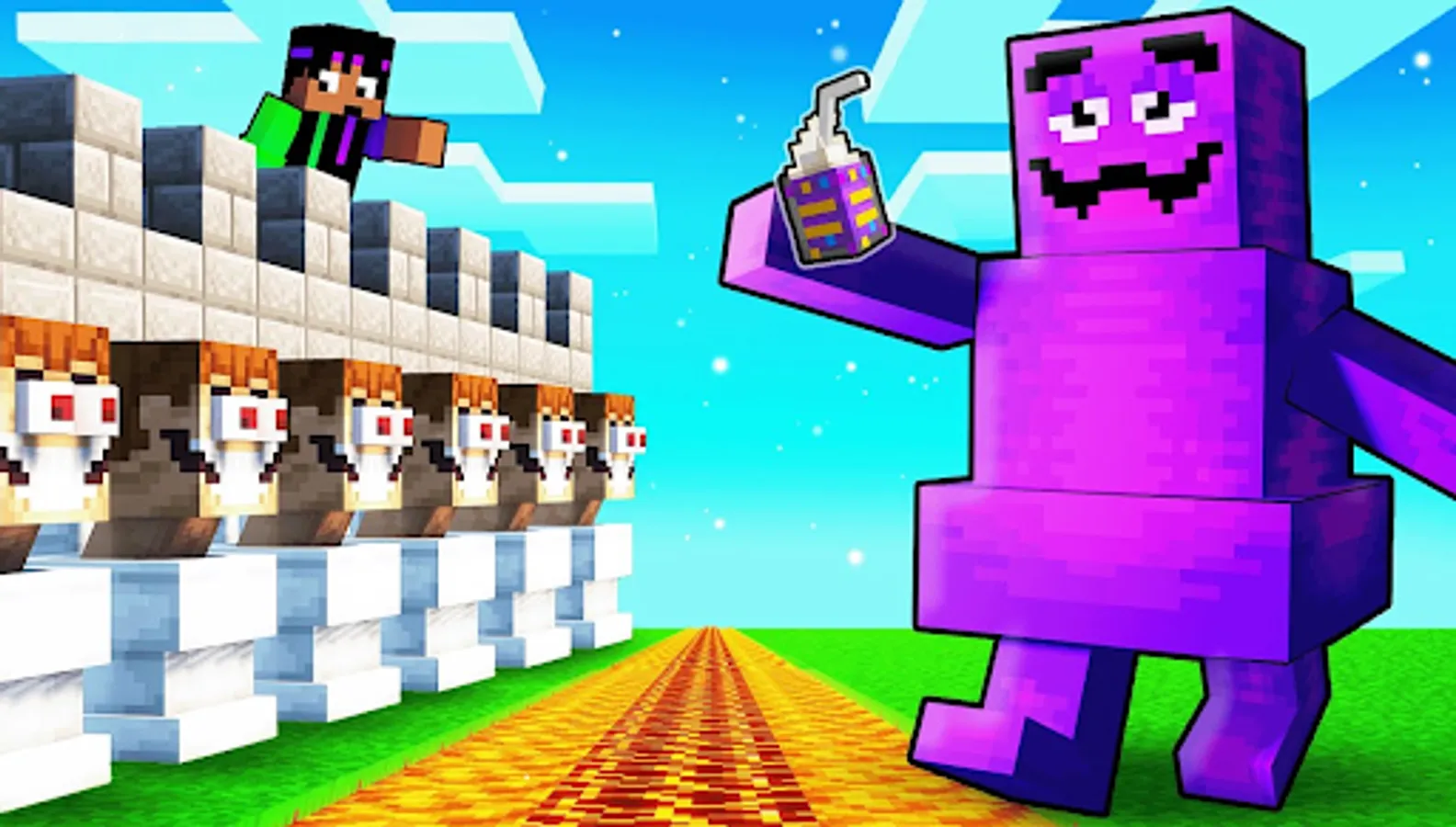 Now you can also record a video of how you drink a cocktail and find yourself in unusual positions or strange places covered with a drink. Sprinkle a cocktail across the cubic universe with your friends on mcpe online servers. Grimace is responsible for your transformation into a purple mob, which is much more dangerous than any creature from the school of monsters, let alone a skibidi toilet or cameraman can not resist the powerful attacks of Grimace Shake.