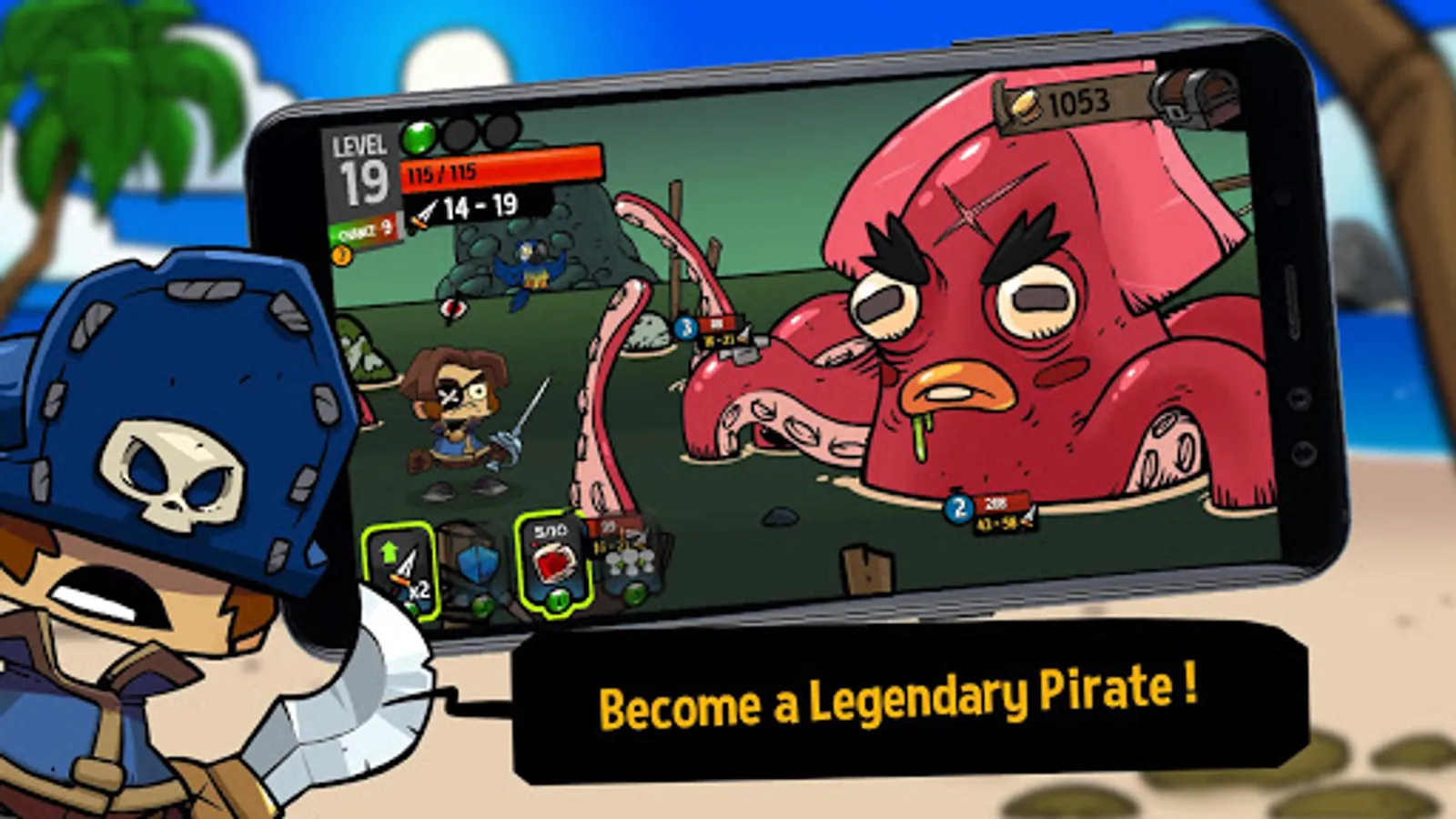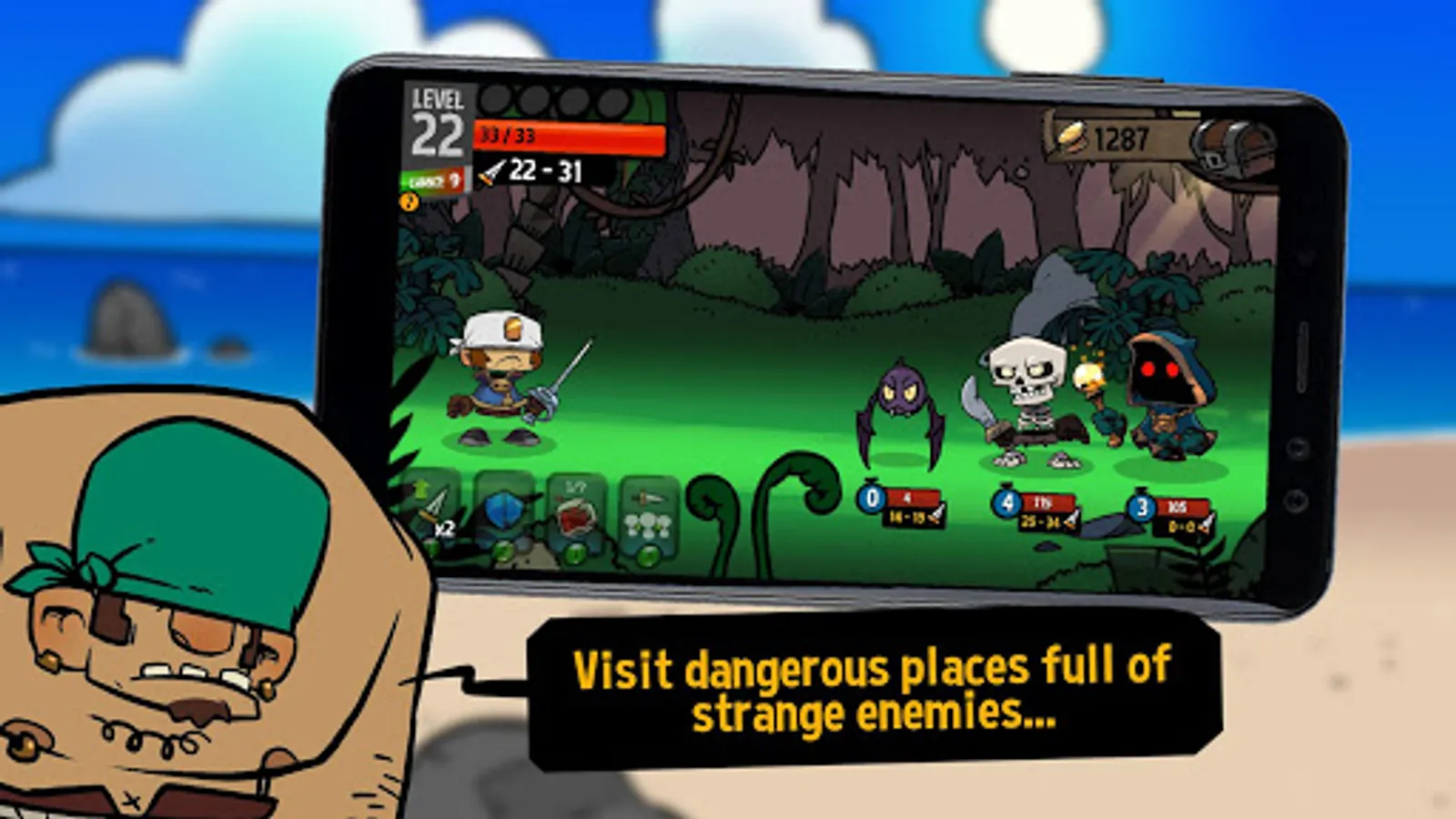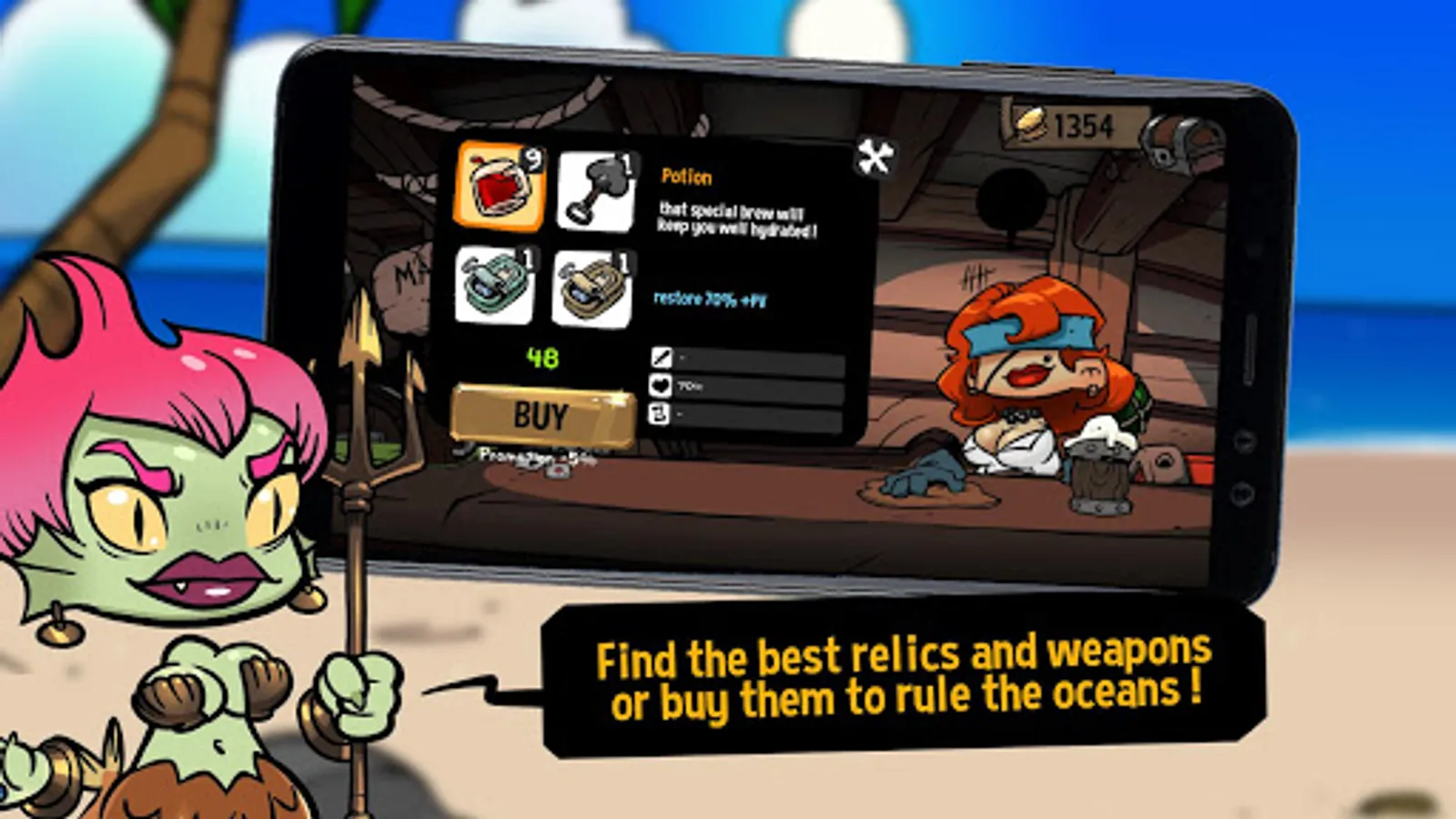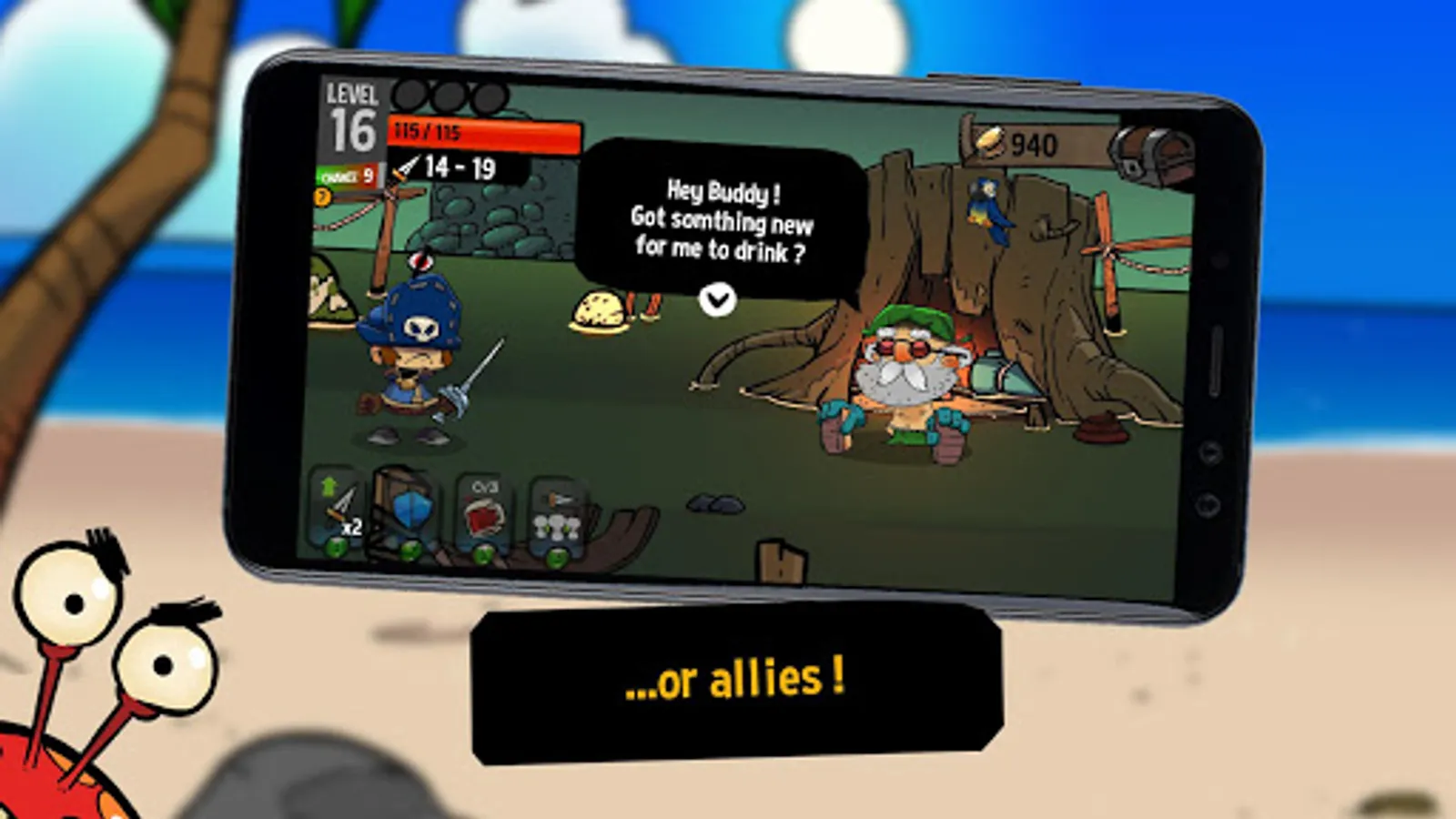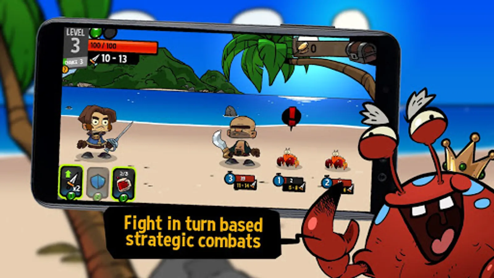 - Fight against pirates, crabs, mermaids, wizards and lots of foes in turn based strategic battles