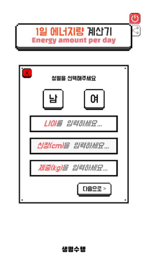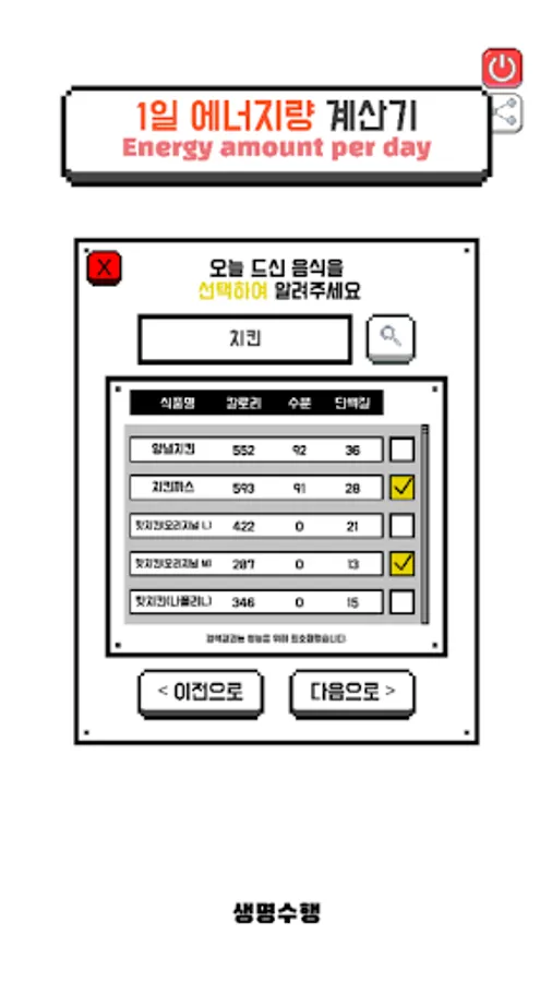It is an app that allows simple calculations by entering basic information and selecting the menus you ate!