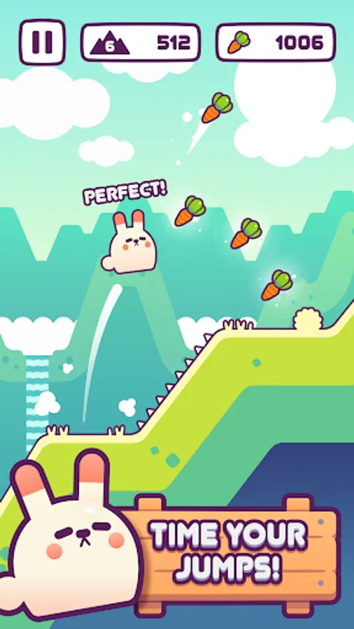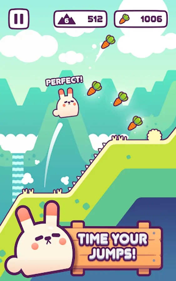 An endless mountain hopping game starring adorable bunnies that tests your timing skills. Gauge your jumps just right to land on the next flat platform without falling into a waterfall or hitting a slope and tumbling down the mountain.