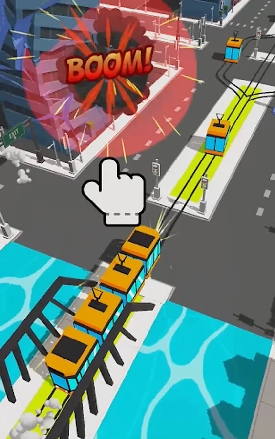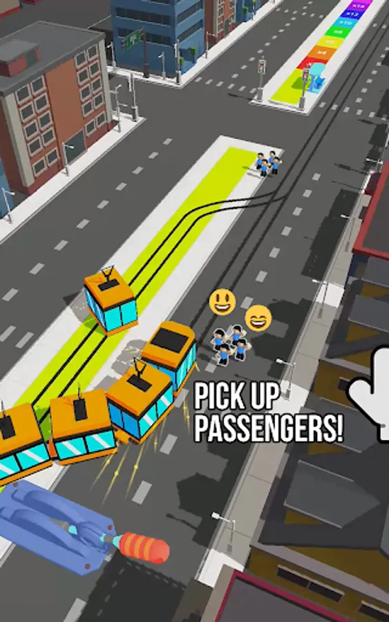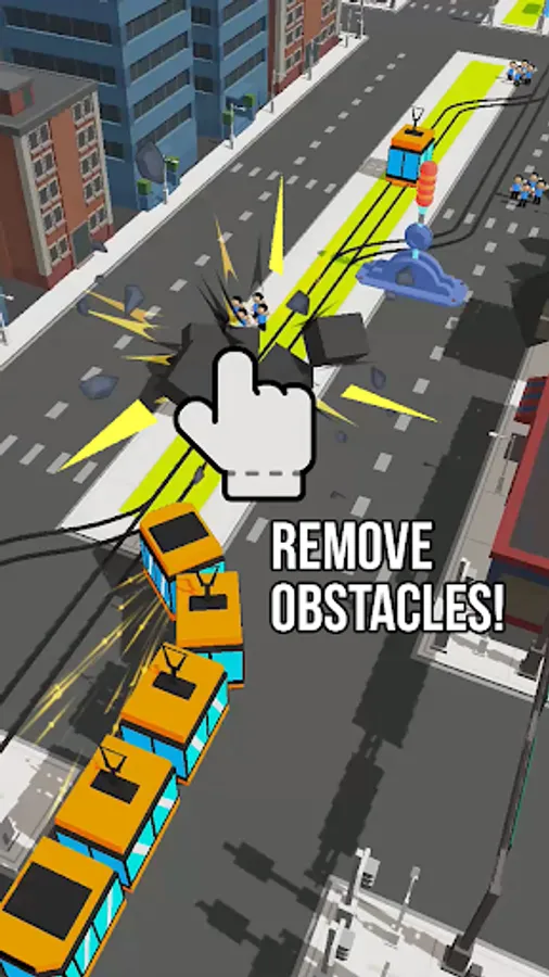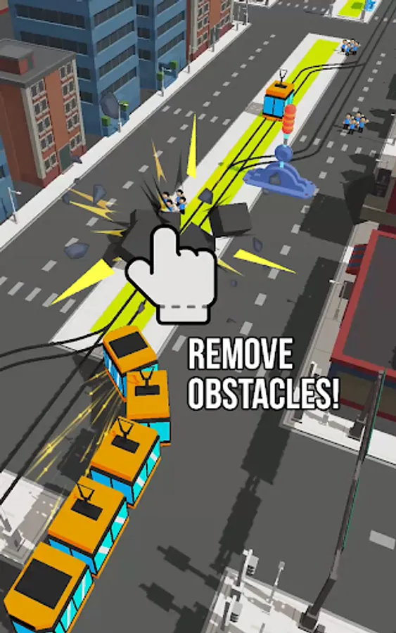 As the tram moves uncontrollably, you need remove obstacles from its path, pick up more tram pieces and collect as much passengers as you can. Try to reach the end with at least one wagon!