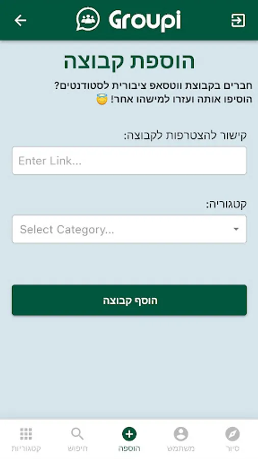 Groupi is the perfect app for students who want to find and join campus WhatsApp groups easily. Whether you're new to campus and looking for groups for your rides and courses, or want to find groups that match your interests, Groupi can help you discover them all.