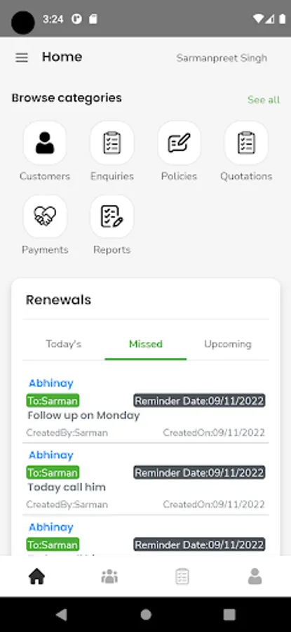 Official employees and agents use the Grover Team App for sales-related purposes. Team members create customers, policies, track inquiries, and review reminders. It aids the team in completing its tasks.