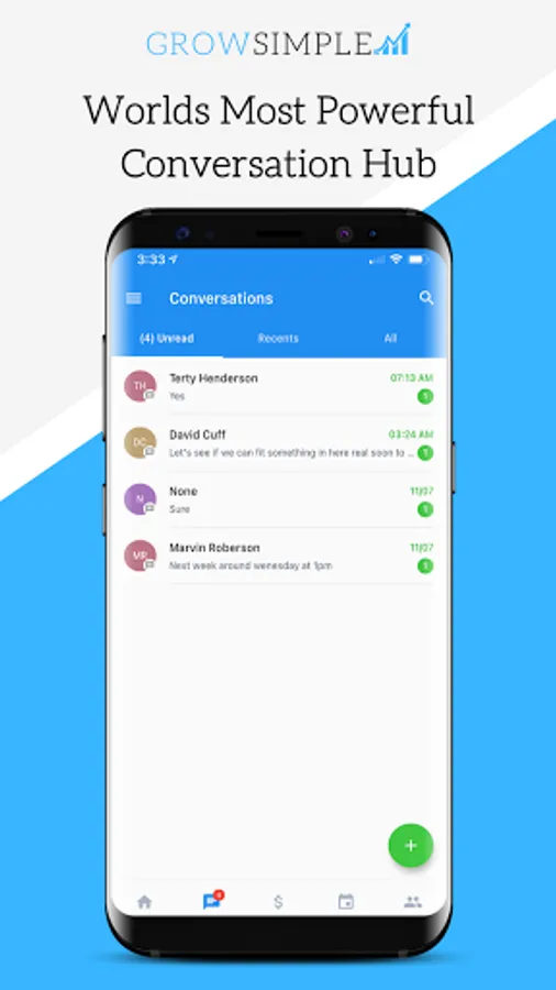 Included in the Platform is a full Conversation Portal with 2 way texting, phone calling, vmail drops, Email and SMS blast, AI Lead Nurturing Features, Sales Pipelines, Funnel + Website builders, Invoicing, Domain + SEO reporting, Call-Tracking, Agent Reporting, Dedicated Business phone line, Power-dialer, Email campaign builders, Smartlists, automated appointment setting, Endless Trigger Automations and so much more! Why pay for 10 different platforms when you can have everything in one place and upgrade your business while your simultaneously? Our intuitive platform allows you to create real systems and processes in your business. So you can run your team & business as an owner from a 30,000 foot view instead of being trapped in the day to day as an operator. It is time to bring you & your business to the next level. Welcome to GrowSimple
