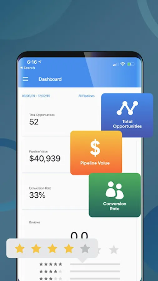 The dashboard will give you an overall view of the statistics of your business. You can select an individual pipeline and see the performance of that particular section of your business.The Dashboard also gives you the ability to view current and past due tasks. You can also mark tasks complete.