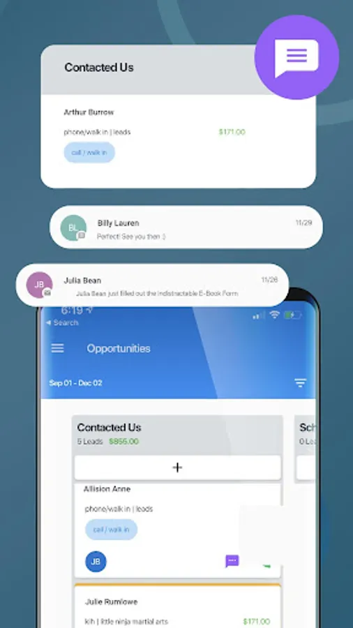 Manage your opportunity cards in each pipeline you have created. Drag and Drop to the appropriate column.