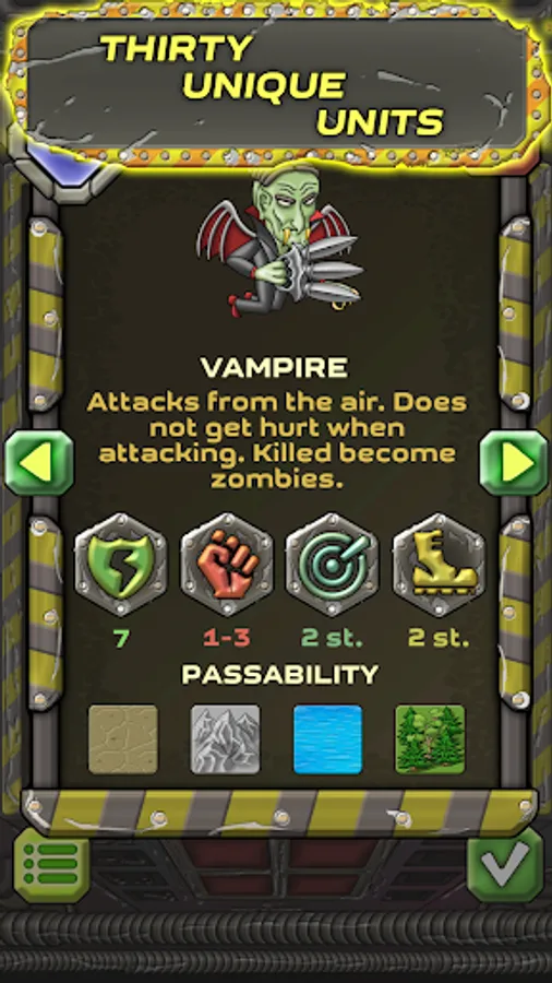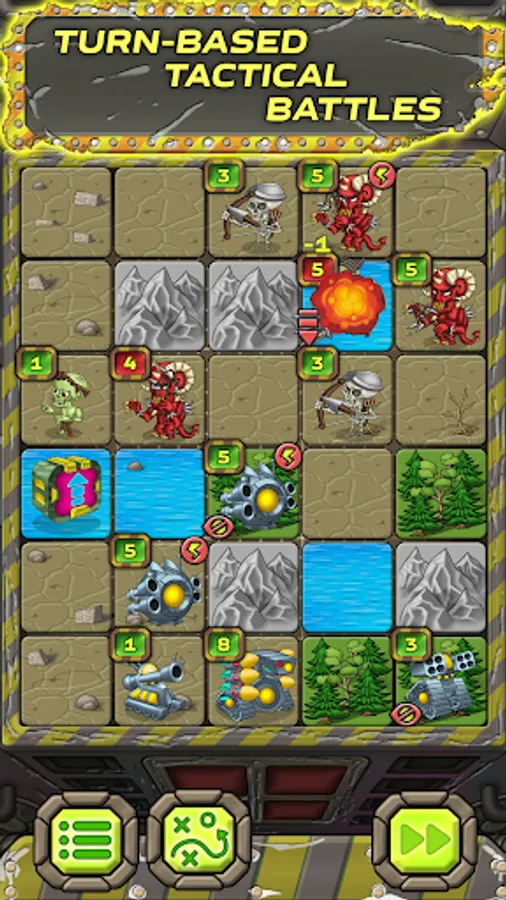The main feature of this offline turn-based strategy is the difference in battle tactics for different races. Lead the defense of the base of zombie archers against monsters, or attack the ranks of soulless robots with tanks. The gameplay is reminiscent of chess or checkers, but the pieces are not limited to classic kings and queens. Instead, you can fight and command the troops of one of seven civilizations with unique characteristics: Humans, Aliens, Robots, Monsters, Zombies, Space Marines and Atlanteans