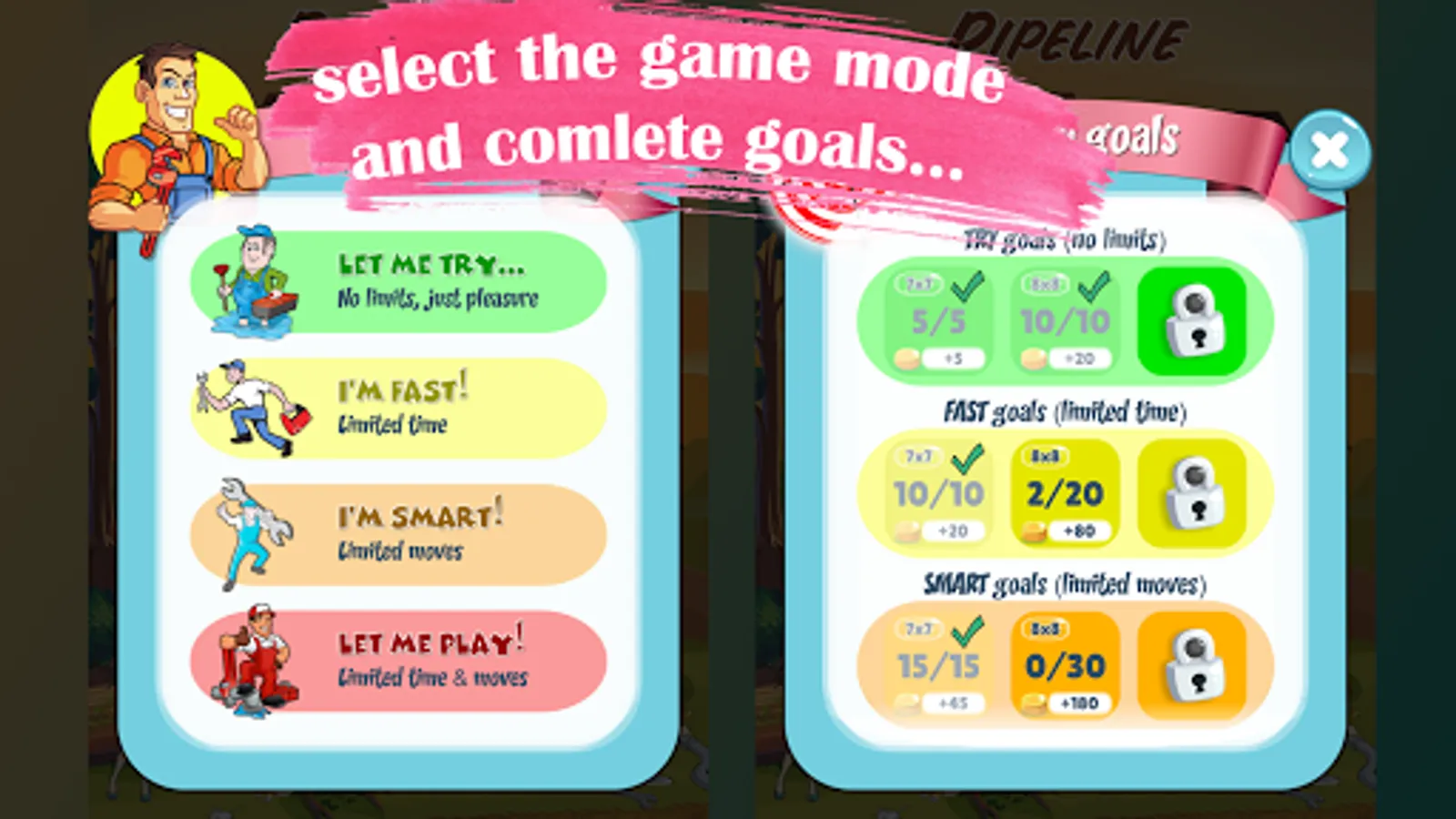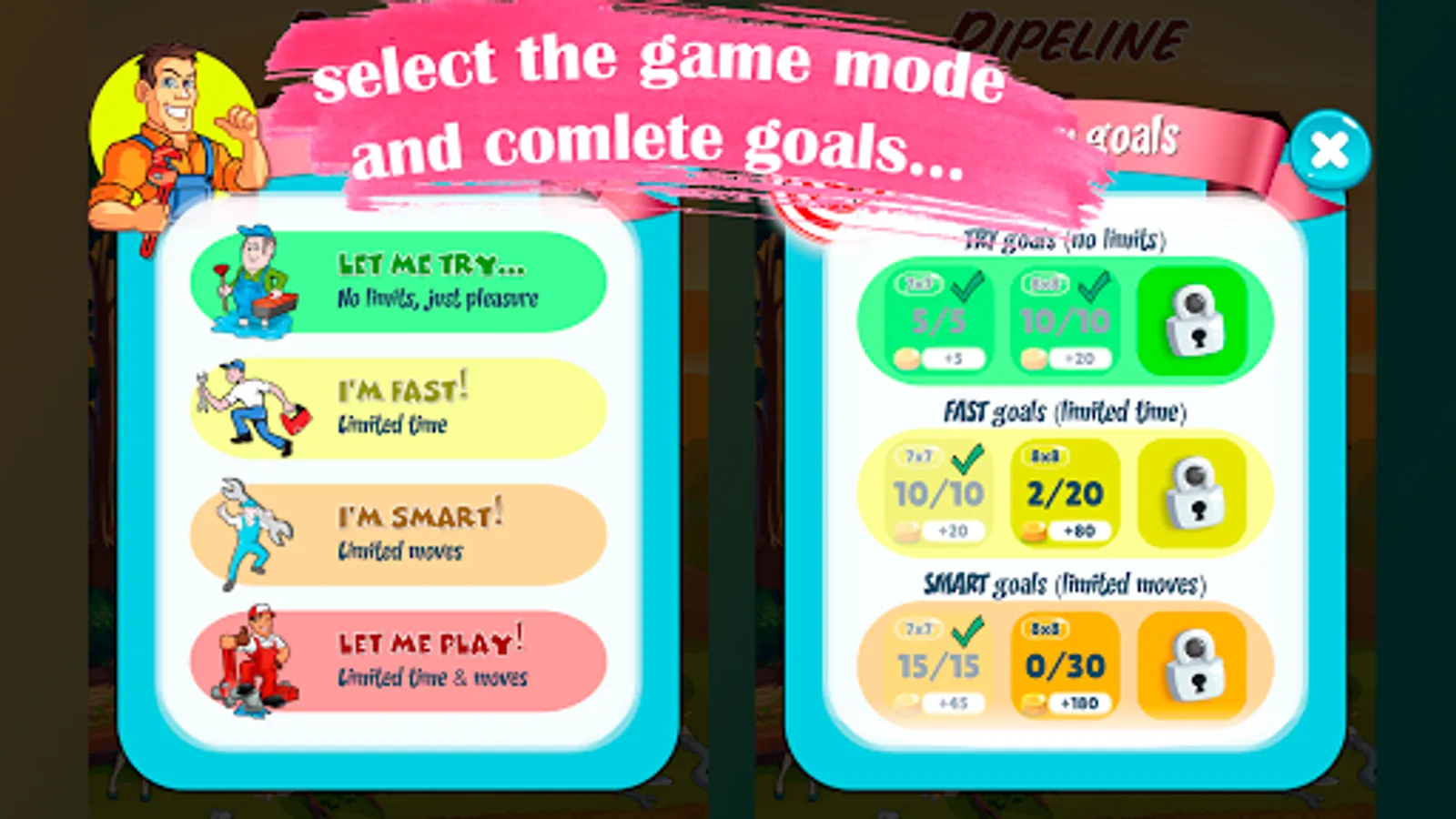You can choose the game mode: no limits, limited time, limited moves or limited both. Of course, the reward for completing a level will differ depending on your choice.