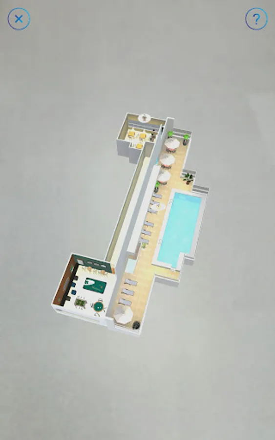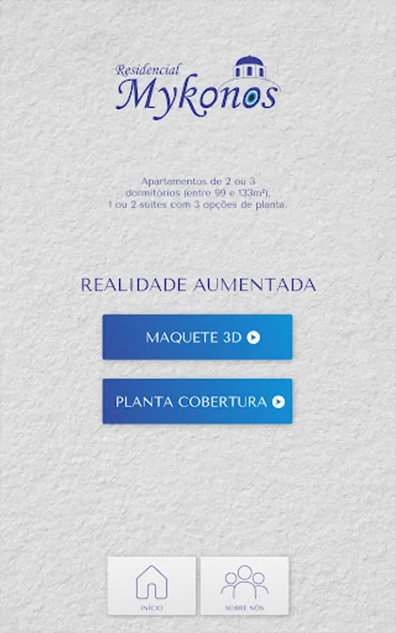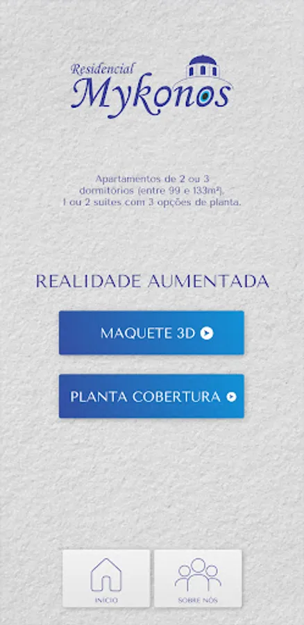 The Residencial Mykonos RA app has 3D views of the project in augmented reality, explore its facade and the fabulous penthouse with swimming pool, games room and party room.