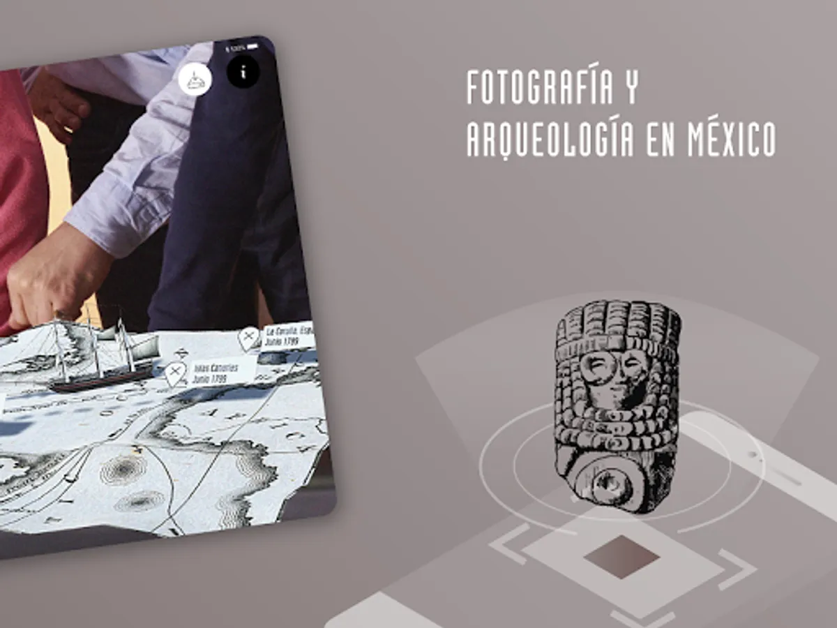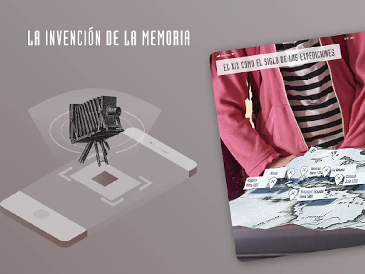 Arte & Cultura Grupo Salinas, in collaboration with the National Museum of Anthropology, presents the App "The invention of memory", whose function is to complement the content of the exhibition of the same name. Through the application, it will be possible to know the origin and motivations of the traveling photographers who arrived in Mexico in the 19th century to explore these lands and take photographic images of the archaeological sites that, in some cases, were discovered by them. Through ‘augmented reality’, the App allows us to know the conditions in which photographs were taken at that time, the equipment they used or monuments that no longer exist today. Also, it is possible to know the current state of some vestiges portrayed by these characters and whose original pieces are part of "The invention of memory".