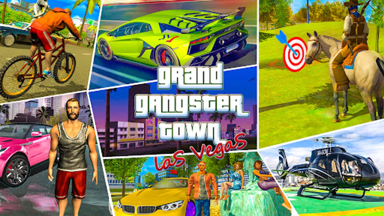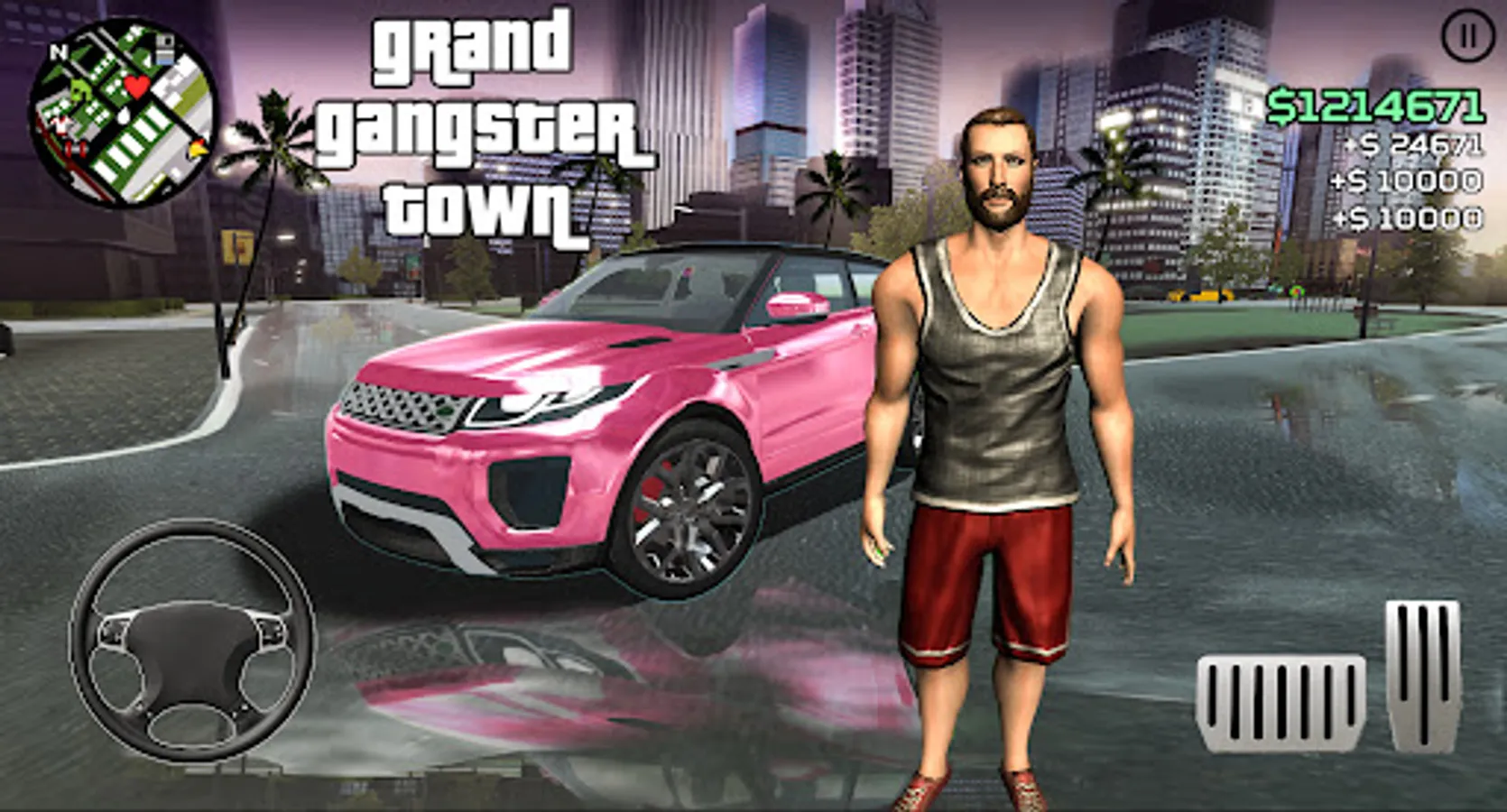 The "Gangster Town " free game allows you to roam around the grand city like Vegas. With this free game you can drive specific street cars around the city. You can control the helicopter, ride a motorcycle, drift ,swim in the sea, complete the different missions and get rewards. You can go to town and admire the great beauty. We would like to inform you that, The game has its own unique story. And not a copy of samo games, for example gta or grand theft auto . Many mechanics and actions are branded, which is not in other games of this style.