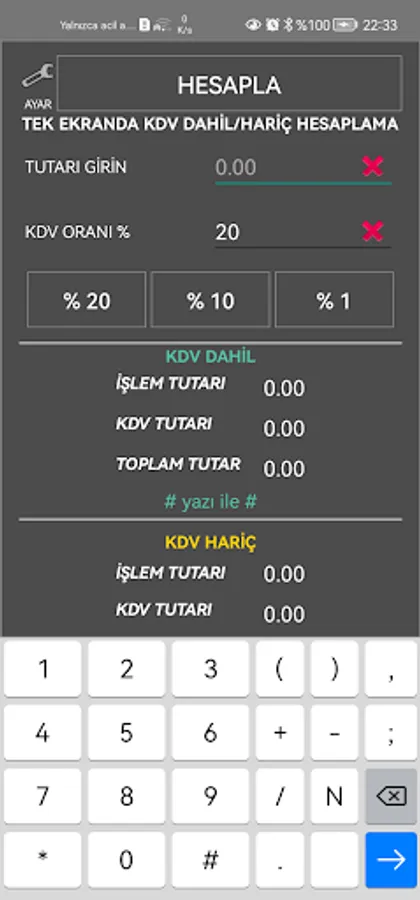 You can see the 1, 8 and 18 VAT rates without using the CALCULATE button by using the buttons in the section we call as easy usage area. If you wish, you can calculate the percentage by typing the desired rate yourself.