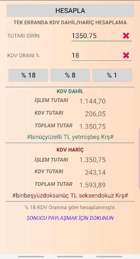 It is a very practical, simple and simple application that does not contain advertising, especially for those who use invoices, which can take the time to calculate VAT. Enter the amount, specify the VAT rate, press the CALCULATE button; this much. You can see VAT Included and VAT Excluded information together.