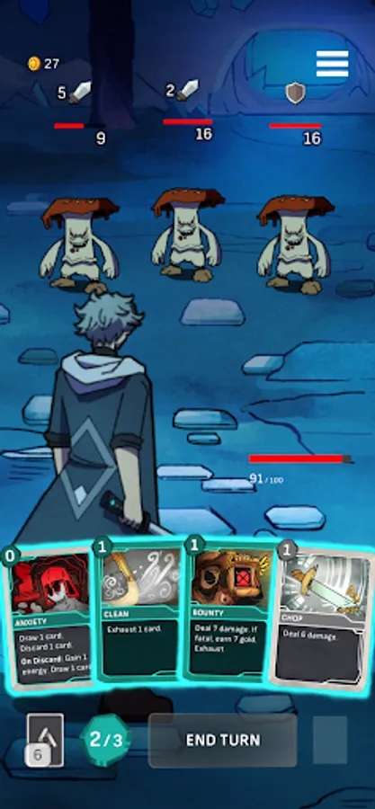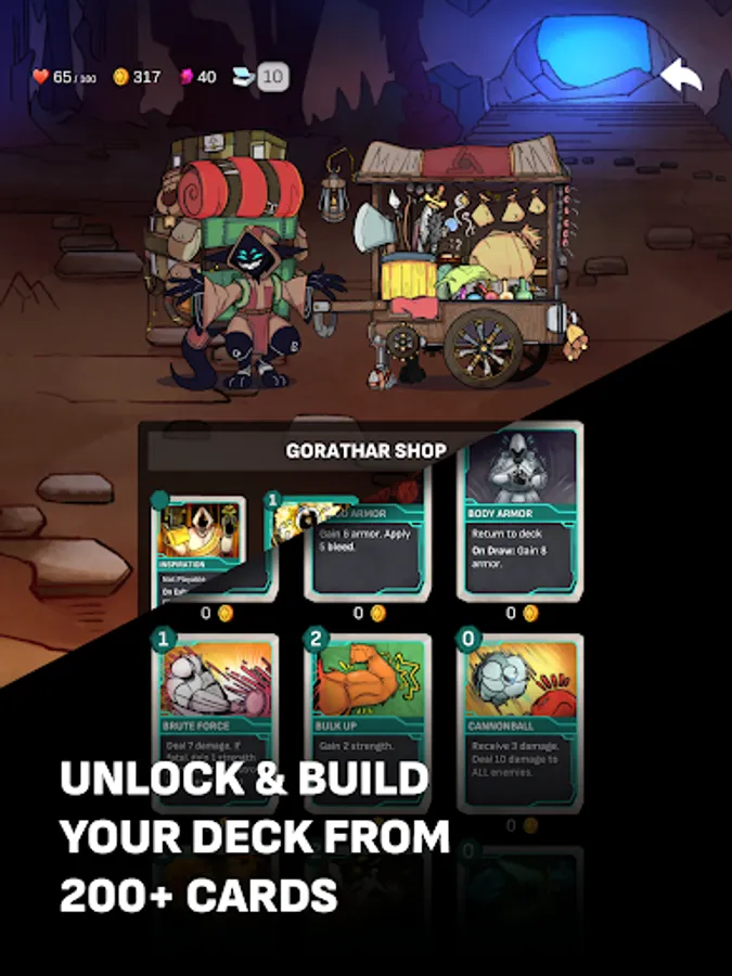 Gorathar's innovative gameplay sets it apart from other deckbuilders. Not only can you play cards by spending energy, but you can also pocket them for future turns, opening up diverse strategic options. Each challenge consists of turn-based battles, where your deck and decisions lead you closer to victory or defeat.