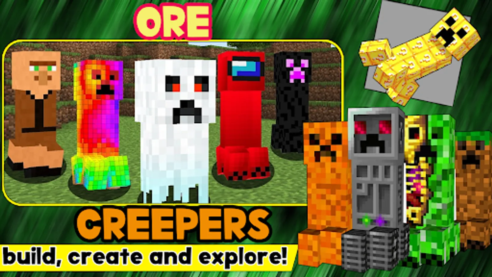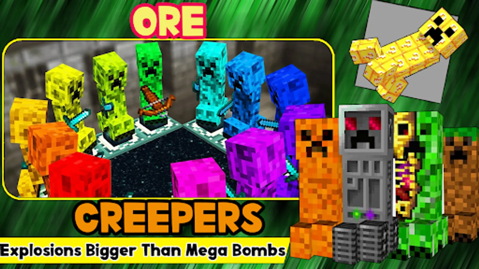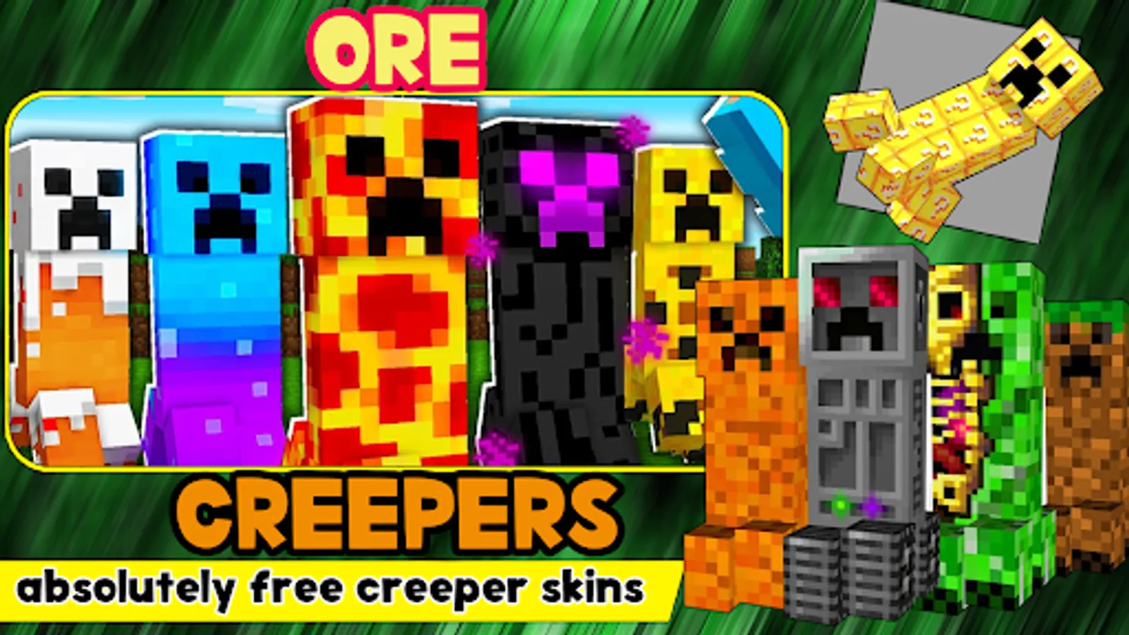Looking for something to diversify the vanilla game world, a way to get rid of boredom? You will get absolutely free creeper skins, improved mobs from the monster school and creeper explosions that are incredibly powerful. The modern application will solve the problems of experienced gamers, namely, it will involve the player in new adventures, many new types of creepers, cave exploration and much more.