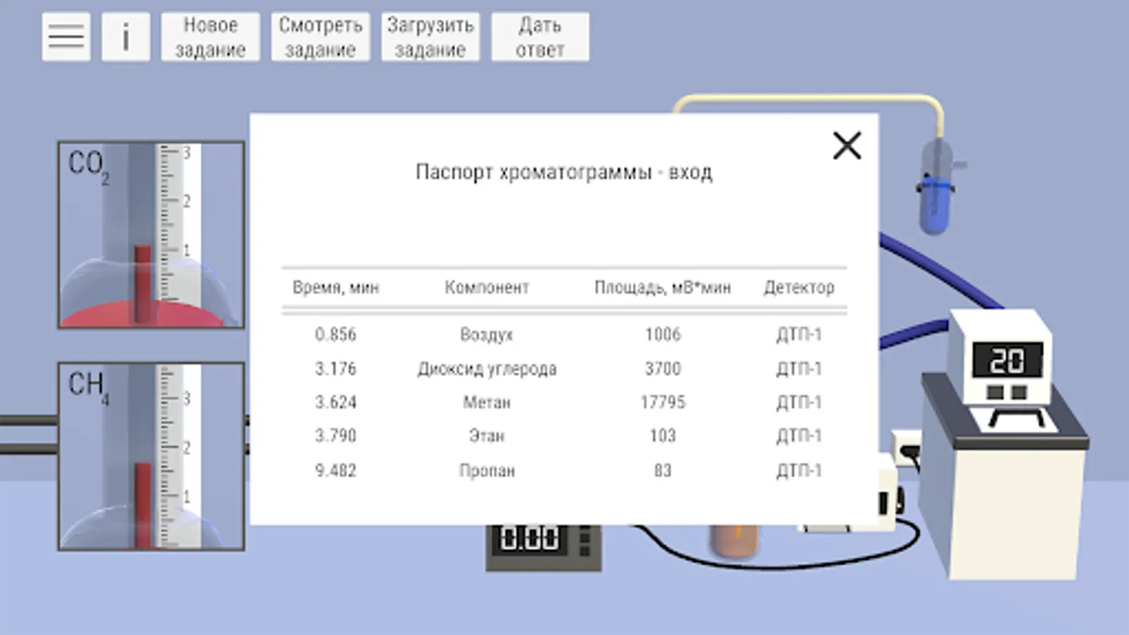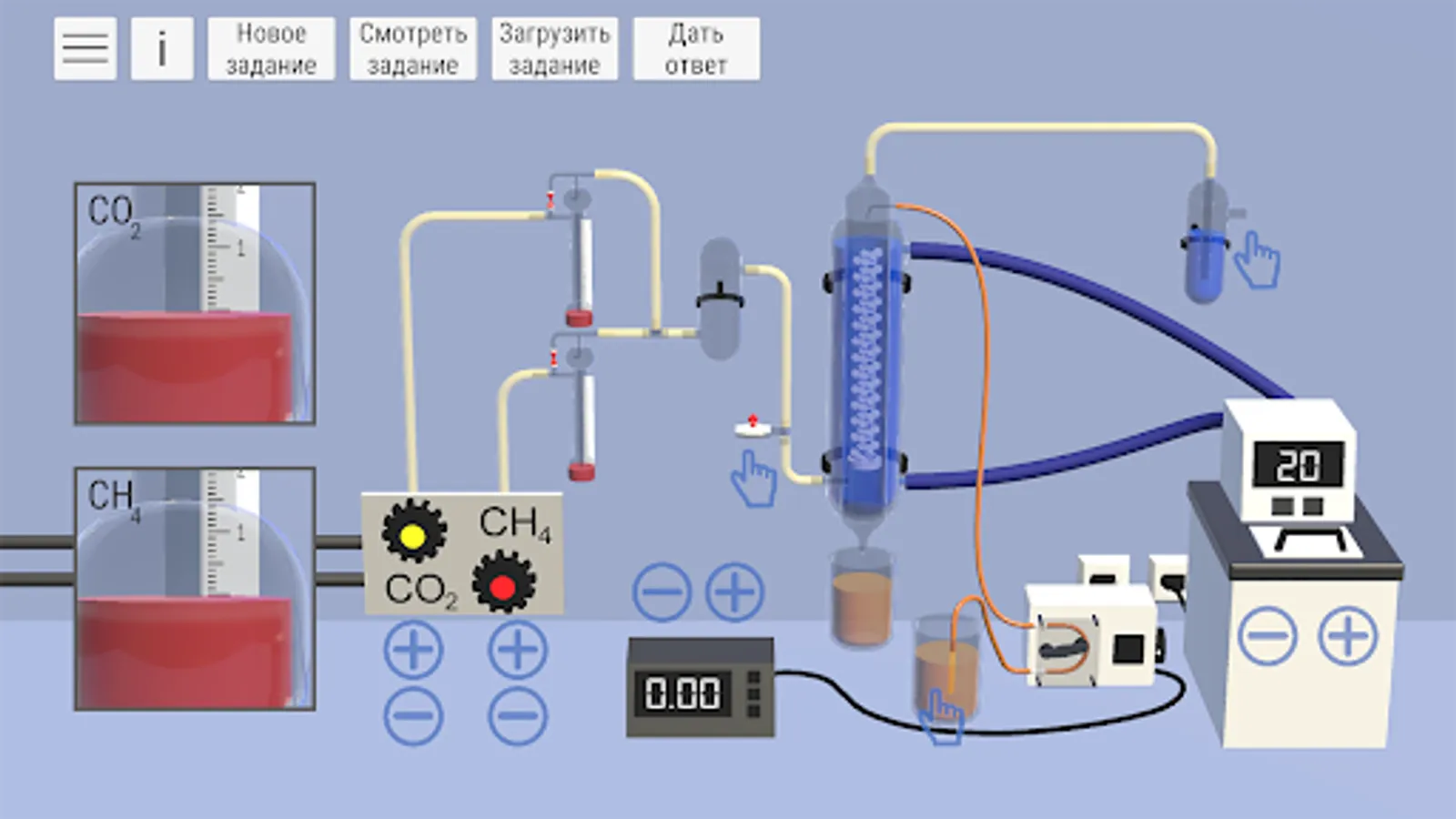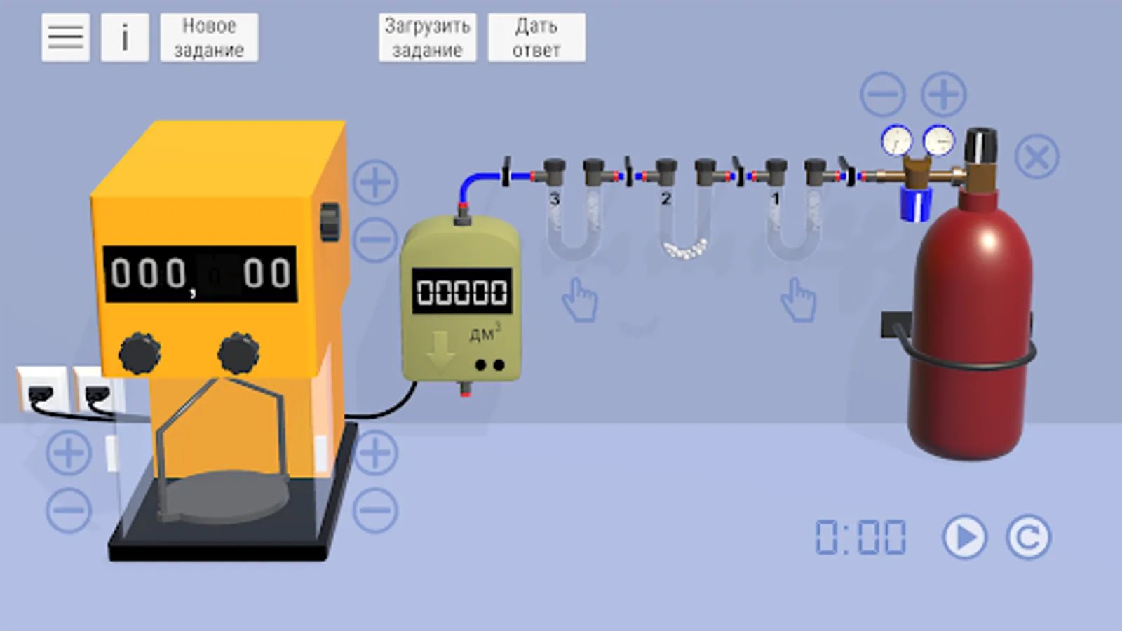 Virtual laboratory work on gas chemistry. The application is based on the "Workshop on gas chemistry" (I.A. Golubeva, N.A. Grigorieva, F.G. Zhagfarov, edited by A.L. Lapidus). List of works:
