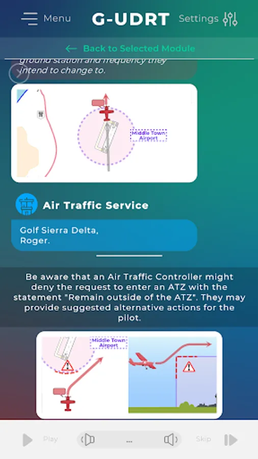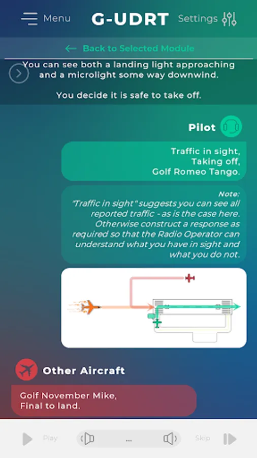Master aviation RT with fully vocalised learning sessions and dynamically simulated practise flights. Whatever your current experience level, G-UDRT has the depth and breadth of content to ensure you can communicate with confidence.