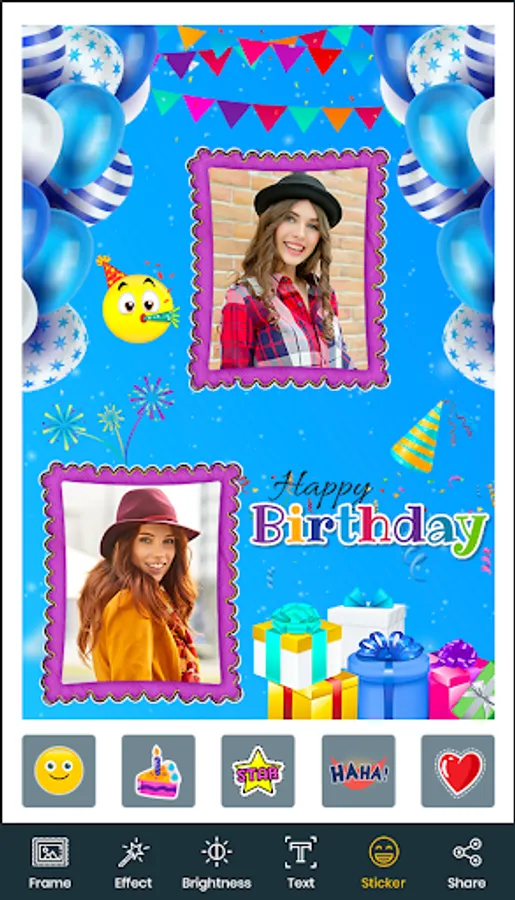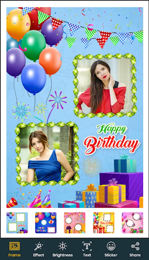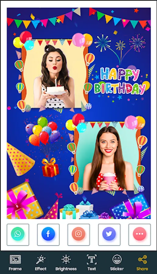 ► Save and share your lovely Happy Birthday dual photo frame with your friends or family members via social media.