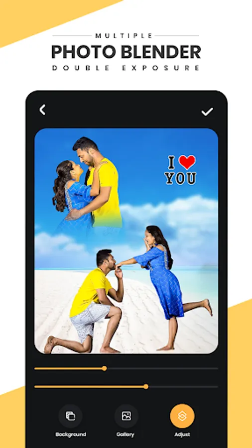 Multiple Photo Blender also work like Double Exposure allows you to blend two photos together to create a double exposure effect! You just need to pick pictures or take photos.