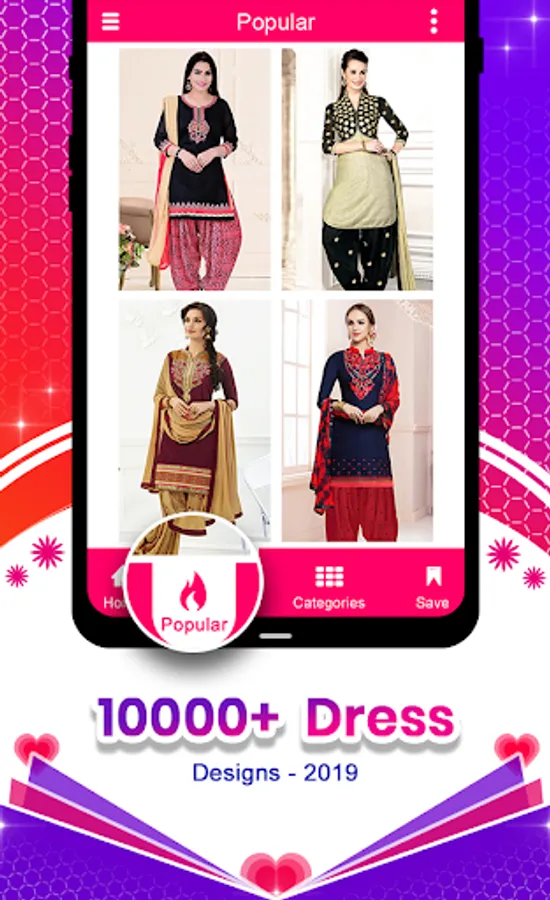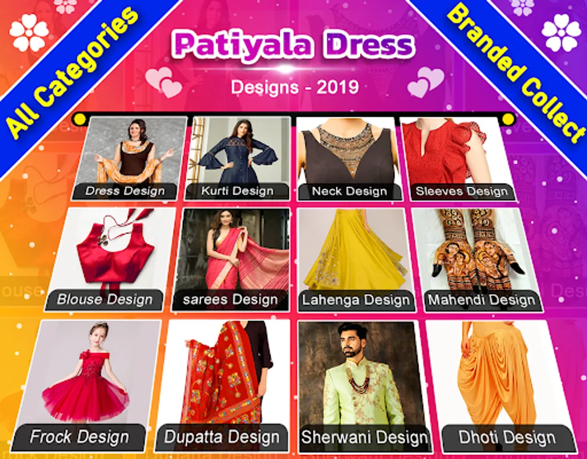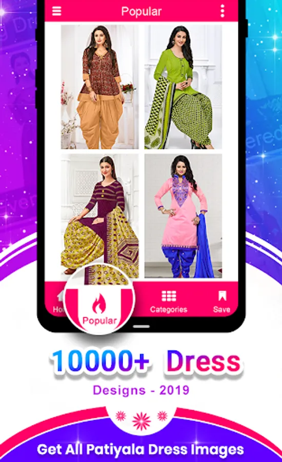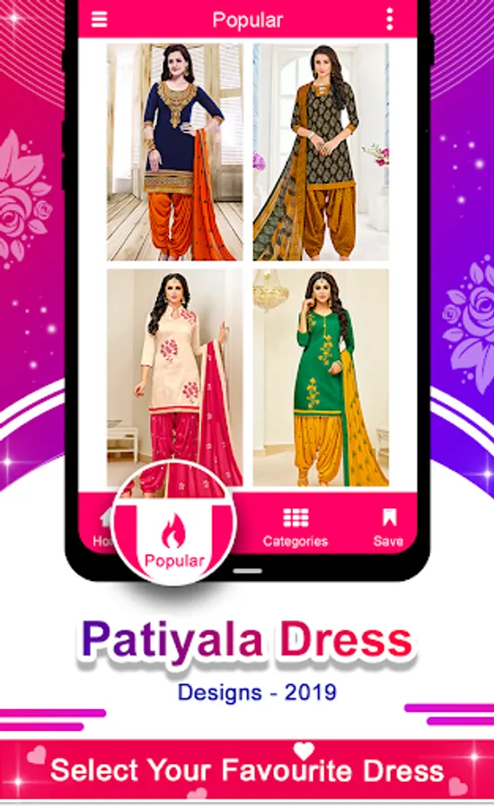 This application location covers diverse plans from Patiala Suits, Patiala Salwars, Chudidar and Punjabi Salwar Kameez.