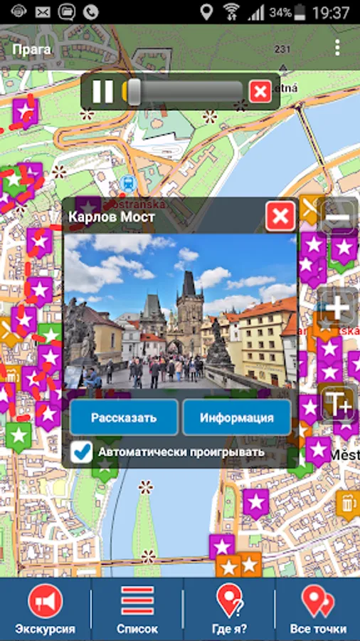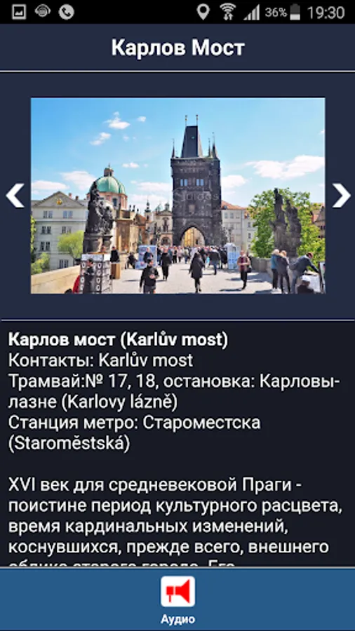 ● audio guide in Prague and other places within the guide. Stories audioguide sounded a professional speaker in the recording studio. Listening to stories will not be distracted while sightseeing, save time and do not spoil the sight reading on the move text on a small screen.