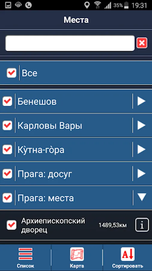 ● Directory attractions. It includes more than 230 points of interest. This is a major historical and cultural sights of Prague and Kutna Hora, Karlovy Vary and Benesov, including the most famous breweries.
