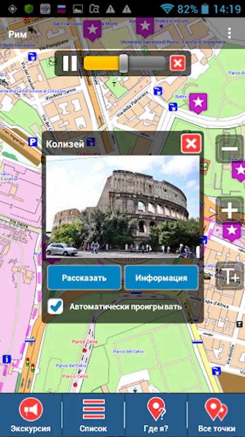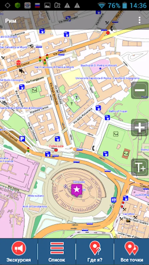 ● Navigation Technologies. Convenient trivia XXI century, which will display your location on a map of Rome and also include stories audio guide when you just approach the inspection object.