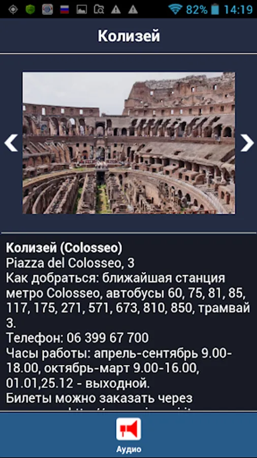 ● audioguide ROME. Stories audioguide sounded a professional speaker in the recording studio. Listening to stories will not be distracted while sightseeing, save time and do not spoil the sight reading on the move text on a small screen.