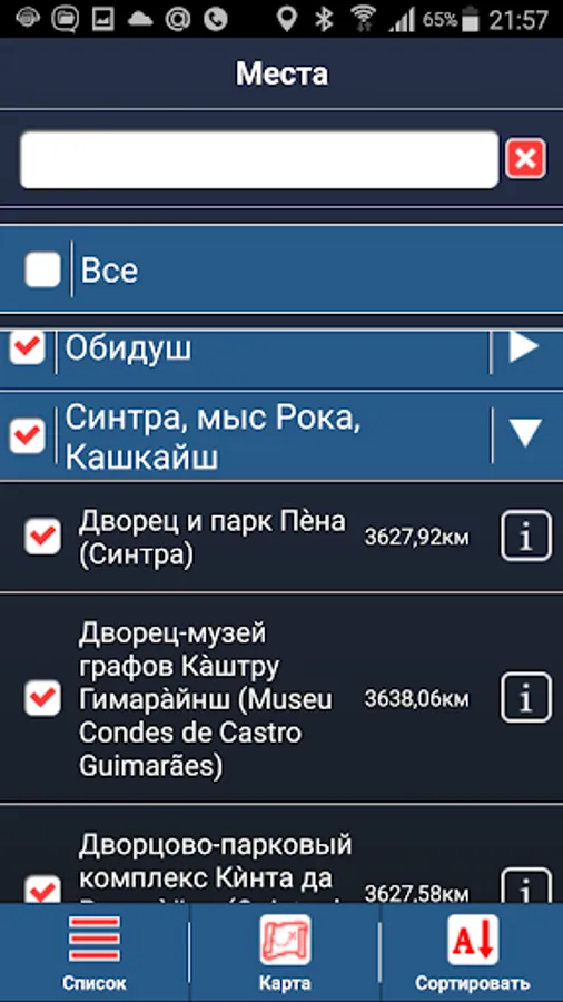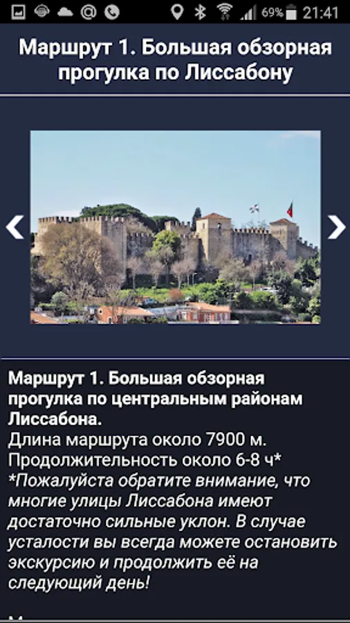 ● WALK IN Lisbon, Sintra and other neighborhoods of the city. free walk mode for those who like to choose his direction. Moreover, not all the interesting places to visit in Lisbon, may be included in sightseeing tours. Make your own plan for a walk, just by selecting the desired locations in the directory, and they will be immediately displayed on the map. At the same time the other objects, you can temporarily remove the card.