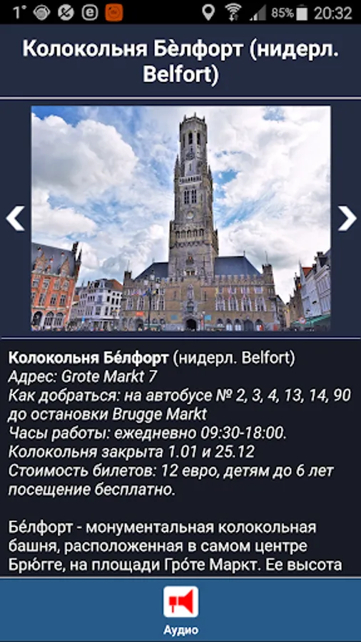 ● AUDIOGUID ON THE BRUGS. The stories of the audio guide are voiced by a professional announcer. Listen to stories without distracting from sightseeing or wasting time. Do not once again spoil your vision by reading on the go text on a small screen.