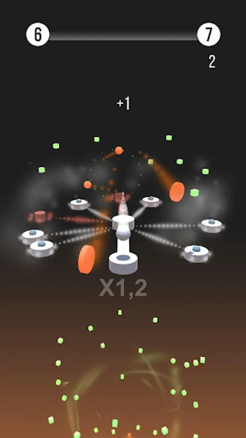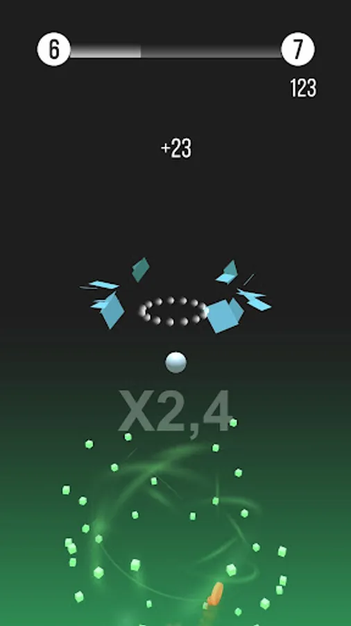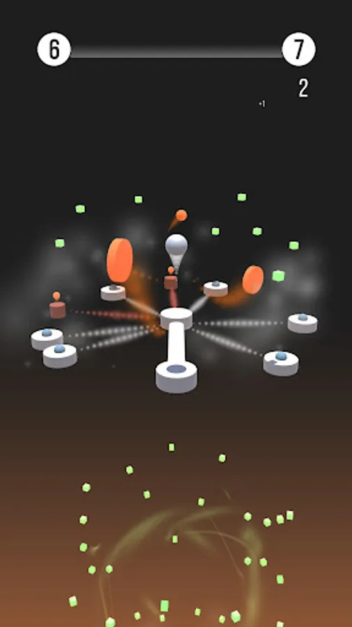 Bounce from platform to platform without hitting any orange objects, collect green cubes to score and go to the next phase!