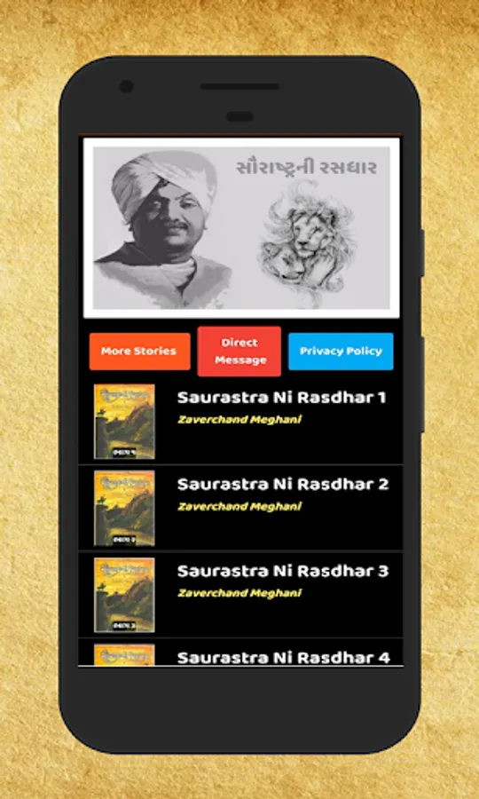 This is app for saurastra ni rasdhaar part 1 to 5 which is written by zaverchand meghani ji. saurastra ni rasdhaar is most beautiful Gujarati book. amazing stories is into this book.