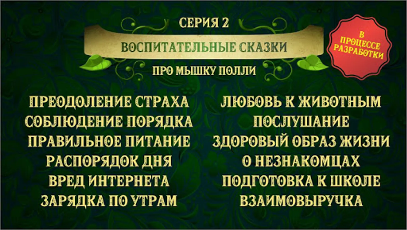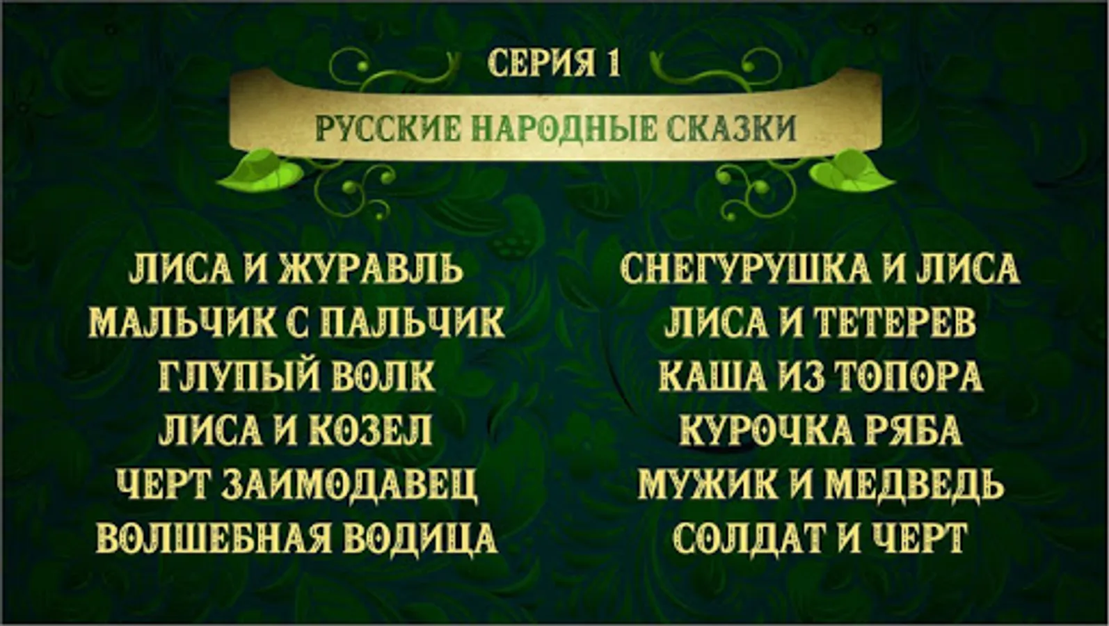 Each collection has its own theme. For example, in the application there is a collection of Russian folk tales, a collection of original educational tales, and others.