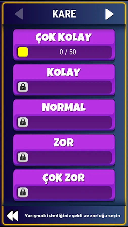 In the game, there are 5 difficulty levels and 3 different shapes (square, triangle and hexagon) such as very easy, easy, normal, hard and very hard.