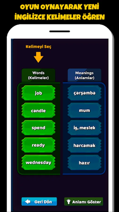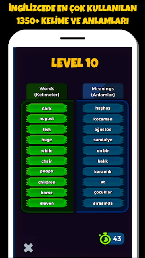 Our game is built on correctly matching the given English words and meanings.