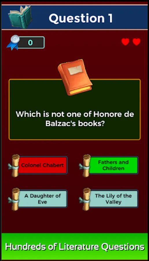 This is a free and funny quiz game about literature, books and authors. There are thousands of literature questions in our game. There are also many challenging types like book-author match, player vs player challenge and classic quiz types.