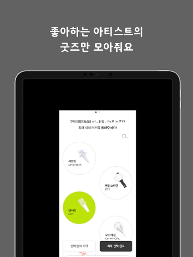 The official colors of your favorite artist are applied throughout the app. I made a space for fans.