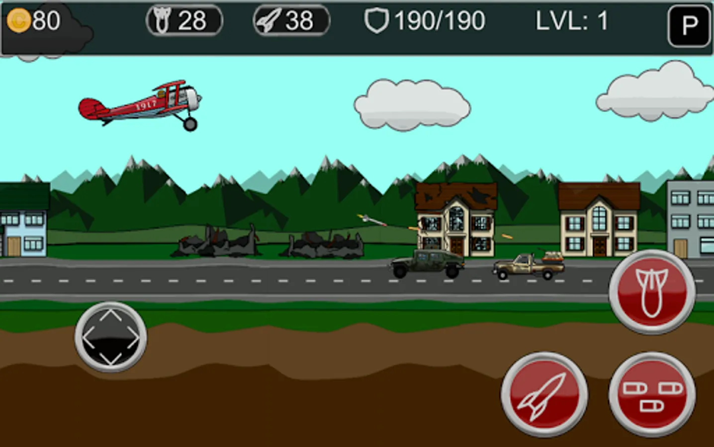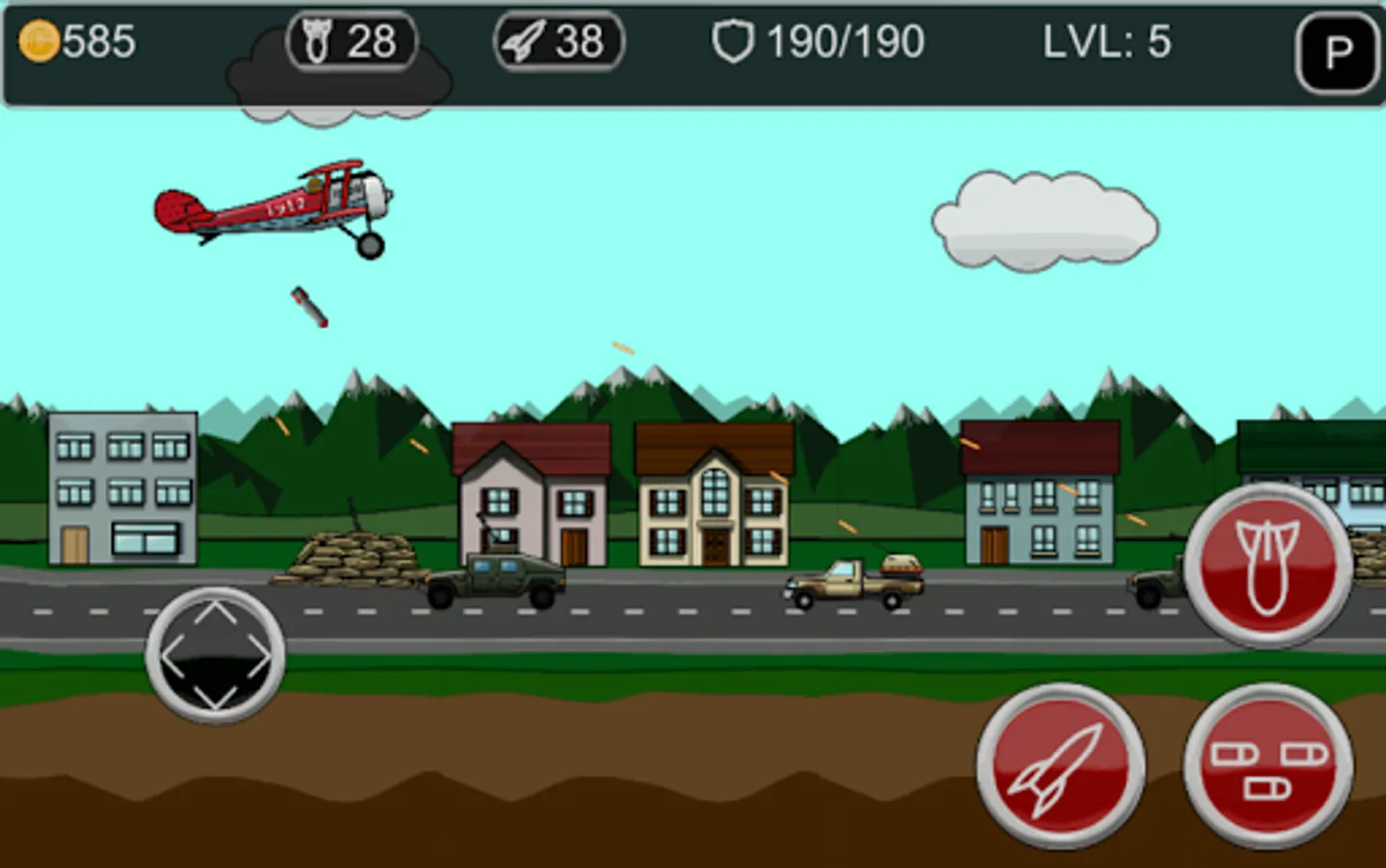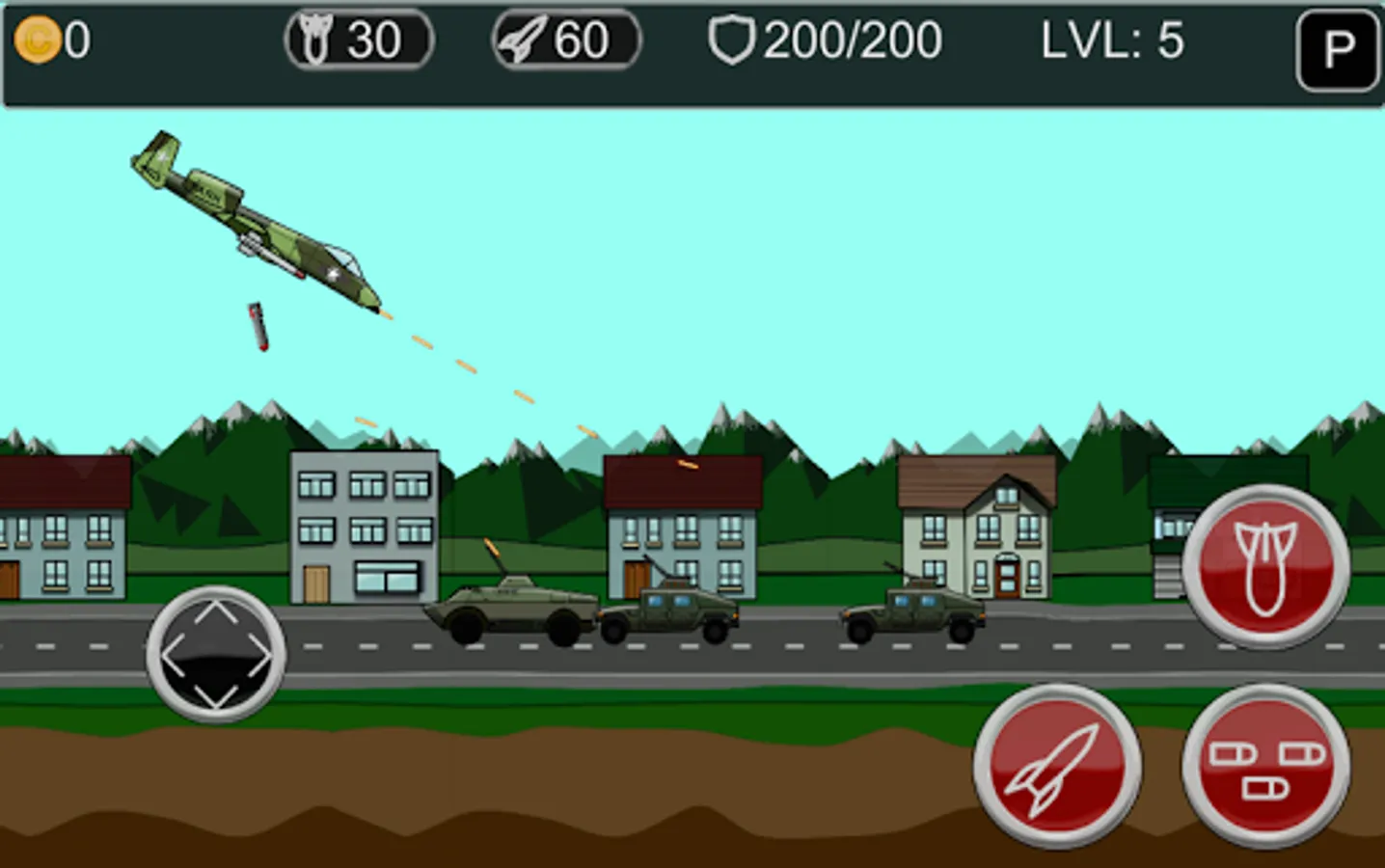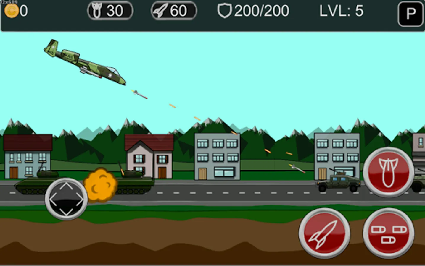 In this game you control airfighter with a lot of ammo. Fly over city full of enemies and destroy everything on your way in air attack! But beware, they have weapon too, and wont be destroyed!