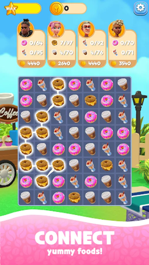 Embark on a captivating puzzle adventure in Foodie Link, where your strategic thinking is your key to success! Dive into a world of colorful food and beverages and intricate challenges as you link matching items on a gridded board to complete orders and earn rewards. Unleash your inner puzzle-solving guru and watch as the board comes to life with every successful connection!