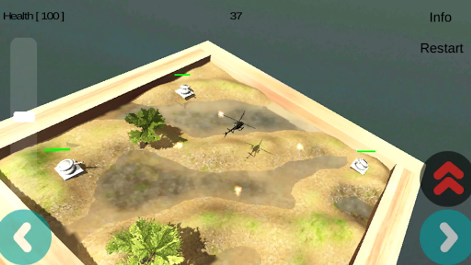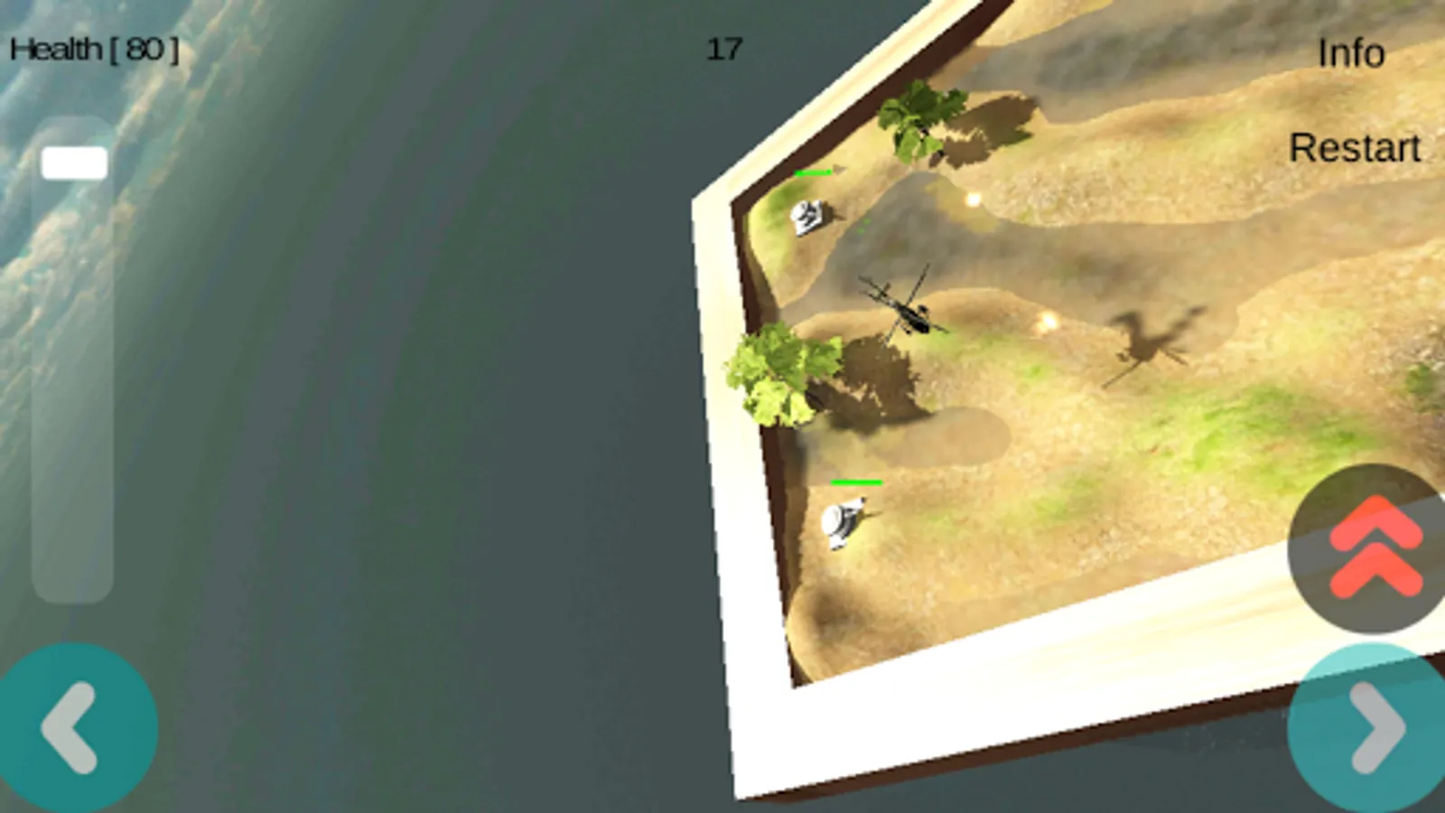 Helicopter can flight over only selected terrain region, helicopter is placed like in the board game. Survive the anti-aircraft shooting and proceed to next levels.