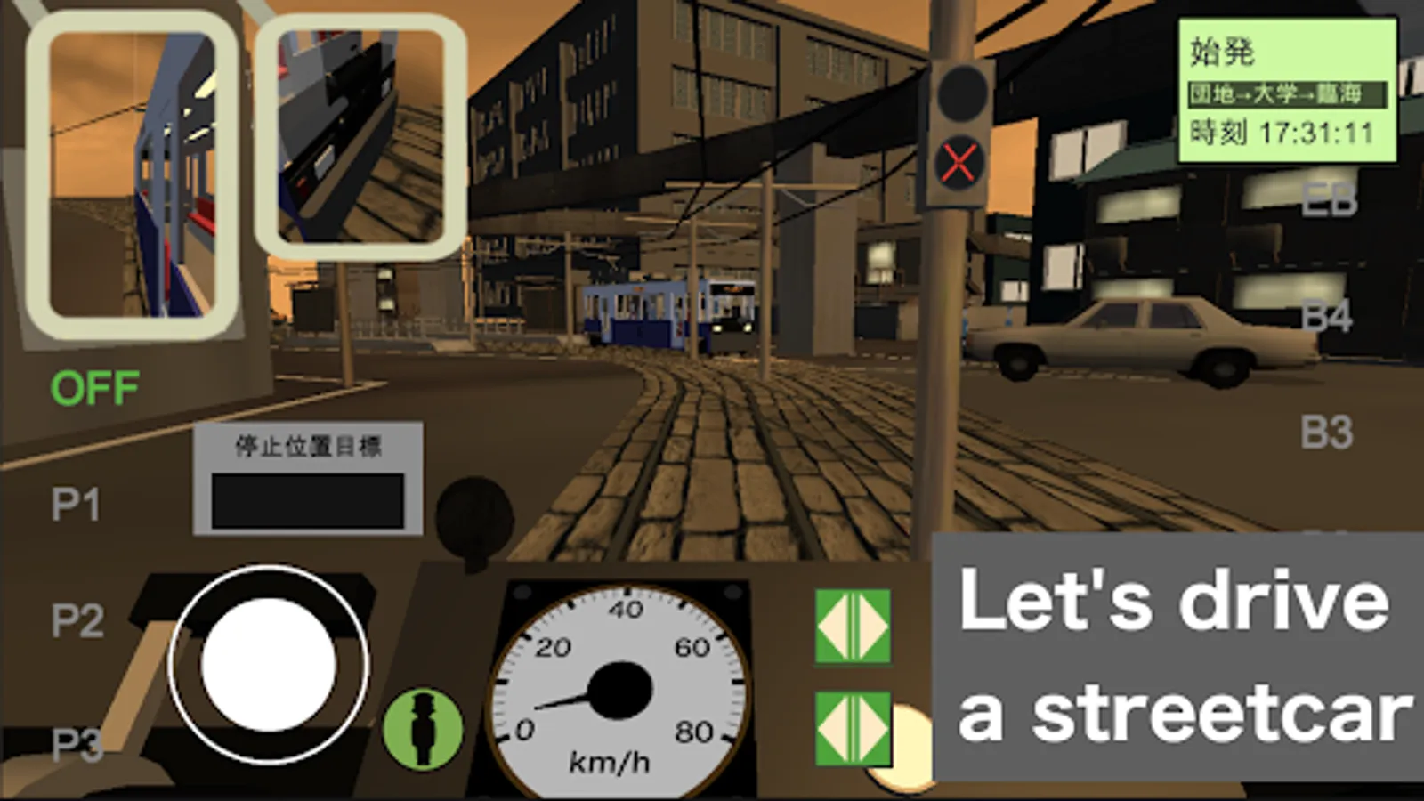 ・In the "Conductor Mode," you will open and close doors and check for safety as you drive the tram to the end of the line. If the train is about to collide with a passenger, you can arrange for an emergency stop without hesitation.