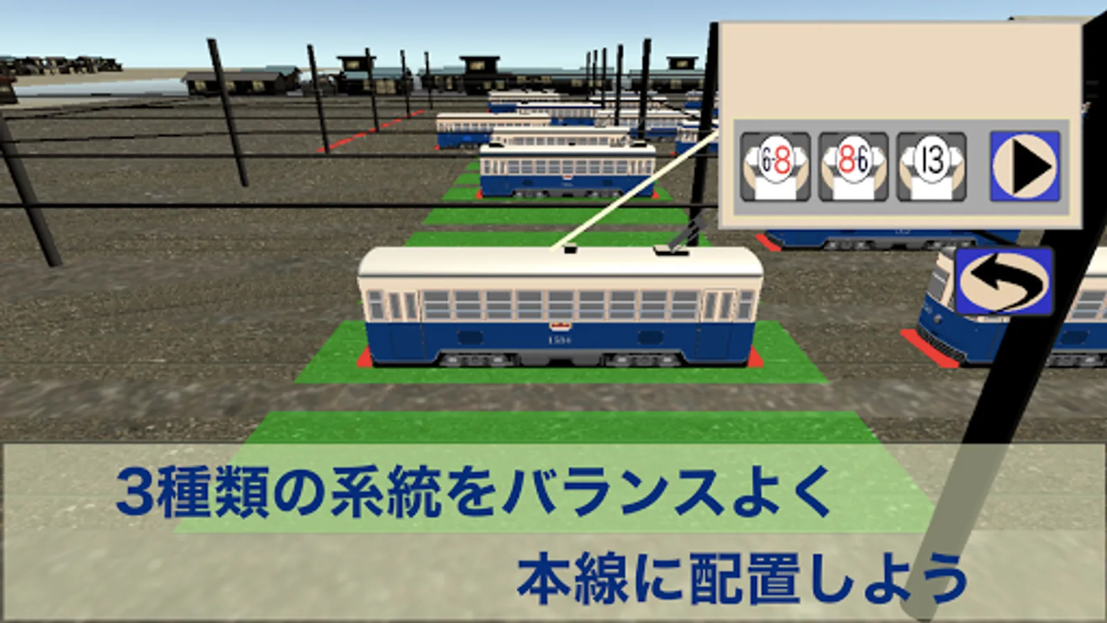 Let's support the operation of Yokohama City Tram by putting the vehicles in the garage on the main line and guiding the vehicles returning from the main line. Place vehicles on the main line in a well-balanced manner and clear them in a faster time! A train stuck in an accident has also appeared! Take advantage of the fact that the system number changes when you return when you issue a warehousing order, so let's give an accurate instruction so that the train does not get clogged.