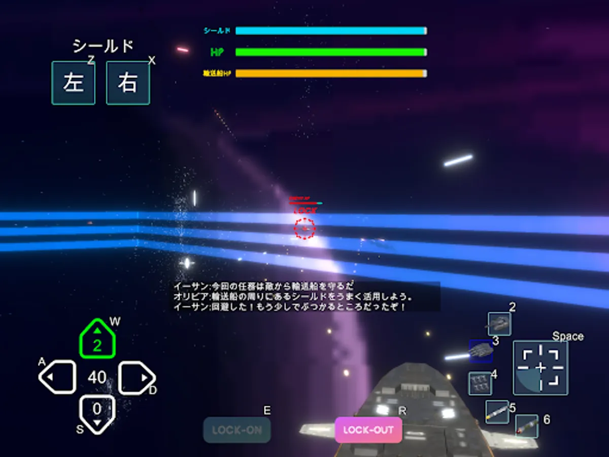 This game is a space battle game in which you control a space battleship and make full use of various weapons to clear missions.