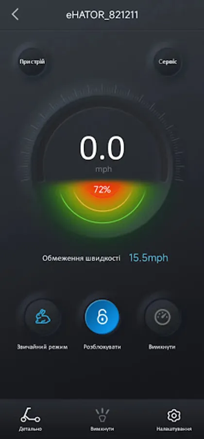 The app establishes a data connection via Bluetooth and the scooter controller.