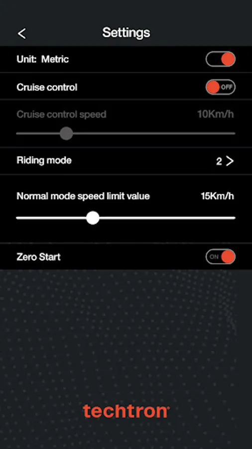 Configure the techtron® eScooter with your desired rider settings. Set speed mode, speed limiter and even lock the scooter to prevent unauthorised access.