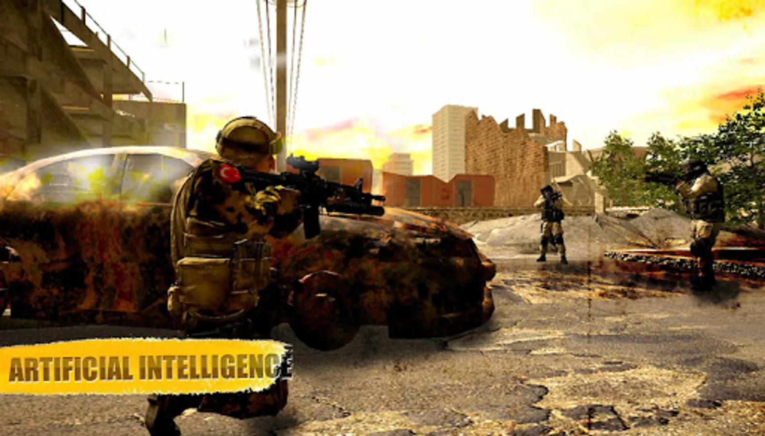 Terrorists are carrying out terrorist attacks in the city. These attacks are a great danger to innocent people. Your task is to clear the city from the terrorists and make the people refuel. But there is one thing to note. Enemy soldiers have successfully completed special attack training, have the best abilities in weapons use and especially in the use of sniper weapons. Your teammates will help you on this mission. Haydi join this action!