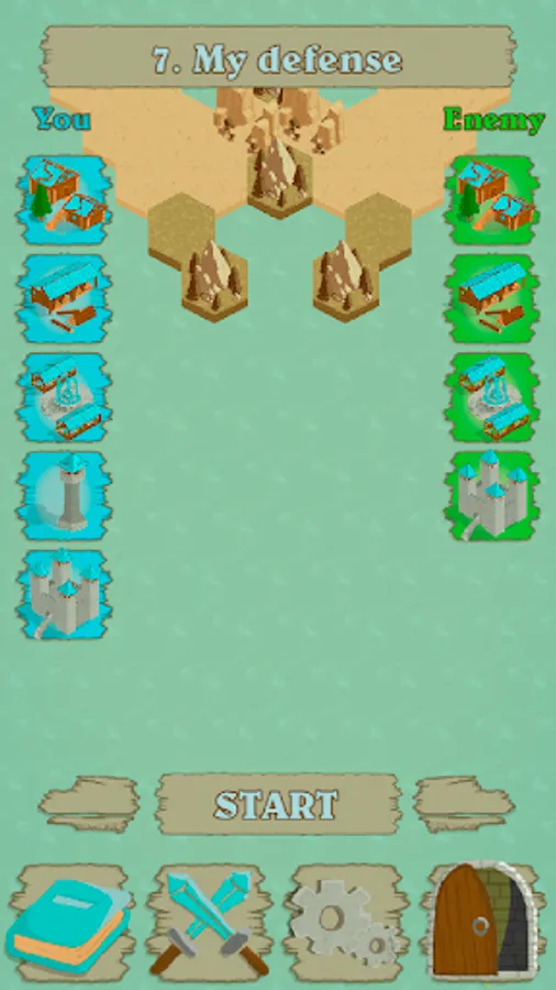 The game is designed in a medieval style. In HBT, in order to defeat the enemy, you must construct buildings on a small battlefield using combo bonuses.