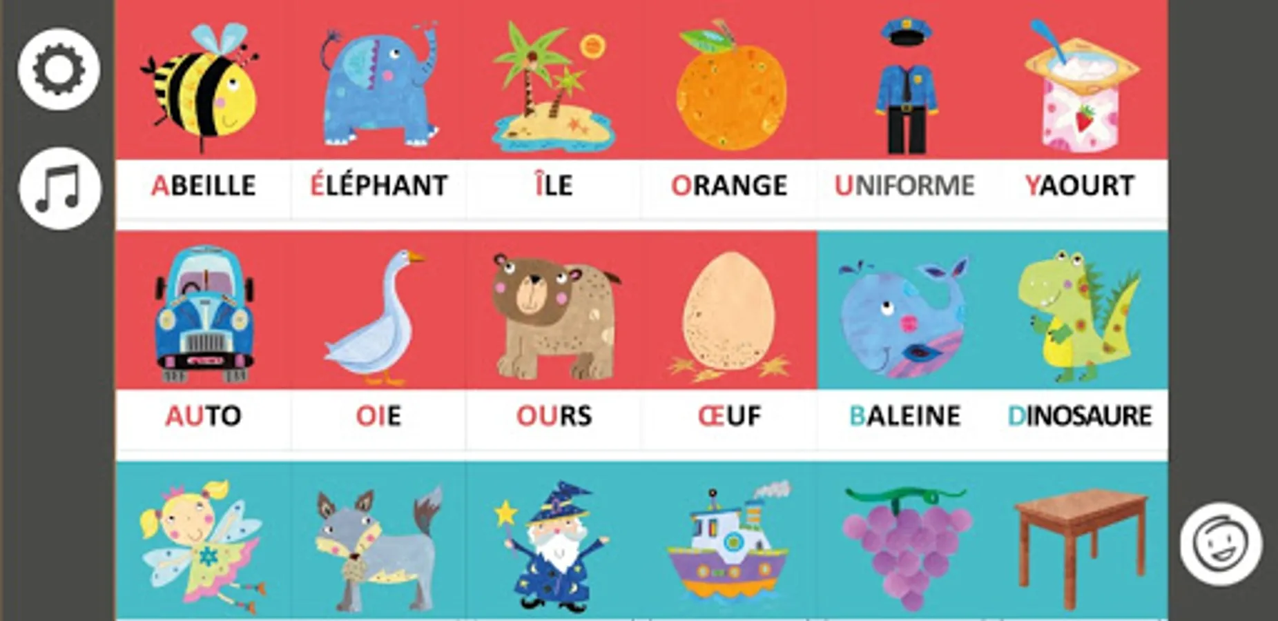 Flashcards Alphabet Tactile and Phonétique is an application that teaches the alphabet and the correspondence between sounds and letters to children. Thanks to 40 subjects associated with the words in which the initial sounds have been highlighted, children develop their phonemic awareness, learn to recognize the shape of letters and refine their gesture through pre-writing exercises. To play, just touch one of the topics and listen to the pronunciation of the corresponding name. By touching a subject twice, children discover the initial letters of words and listen to the corresponding sounds. Finally, children can read the words and record their voices to check if their pronunciation is correct