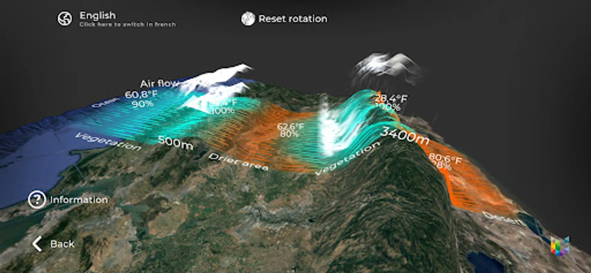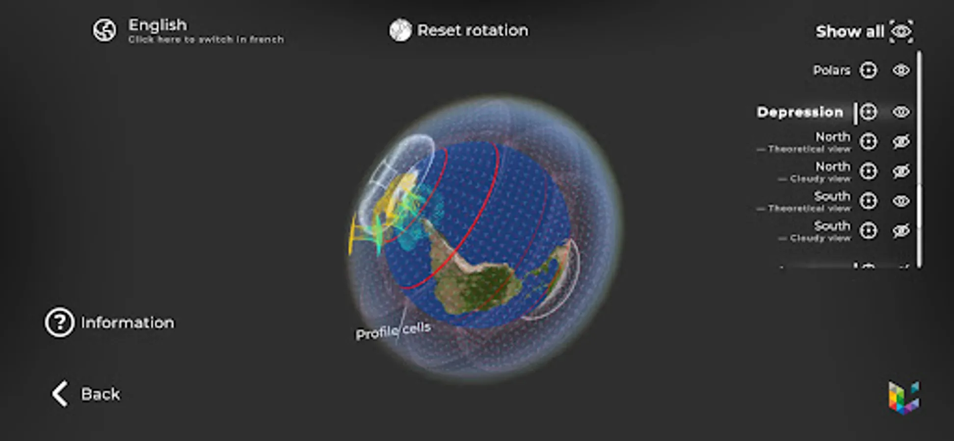 It helps to understand the distribution of climates on Earth according to Peel's classification (2007) and of the general atmospheric circulation thanks to the 3D animation in augmented reality animation :