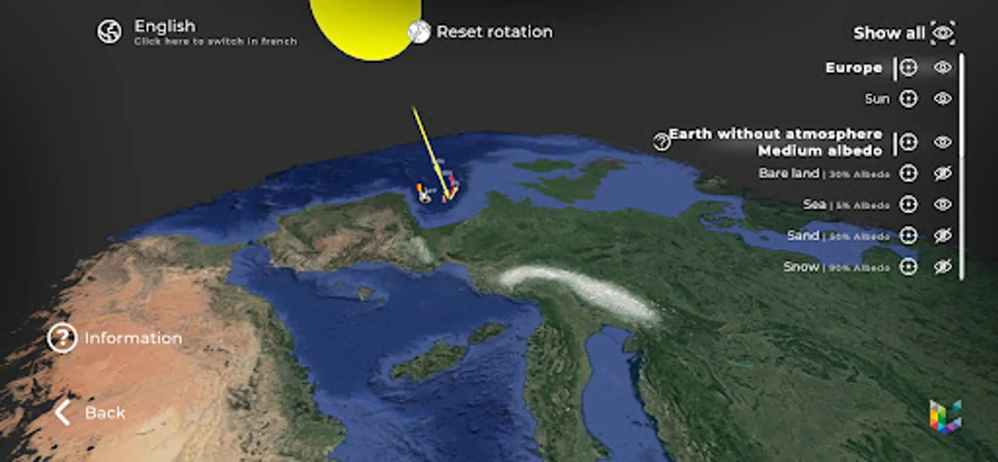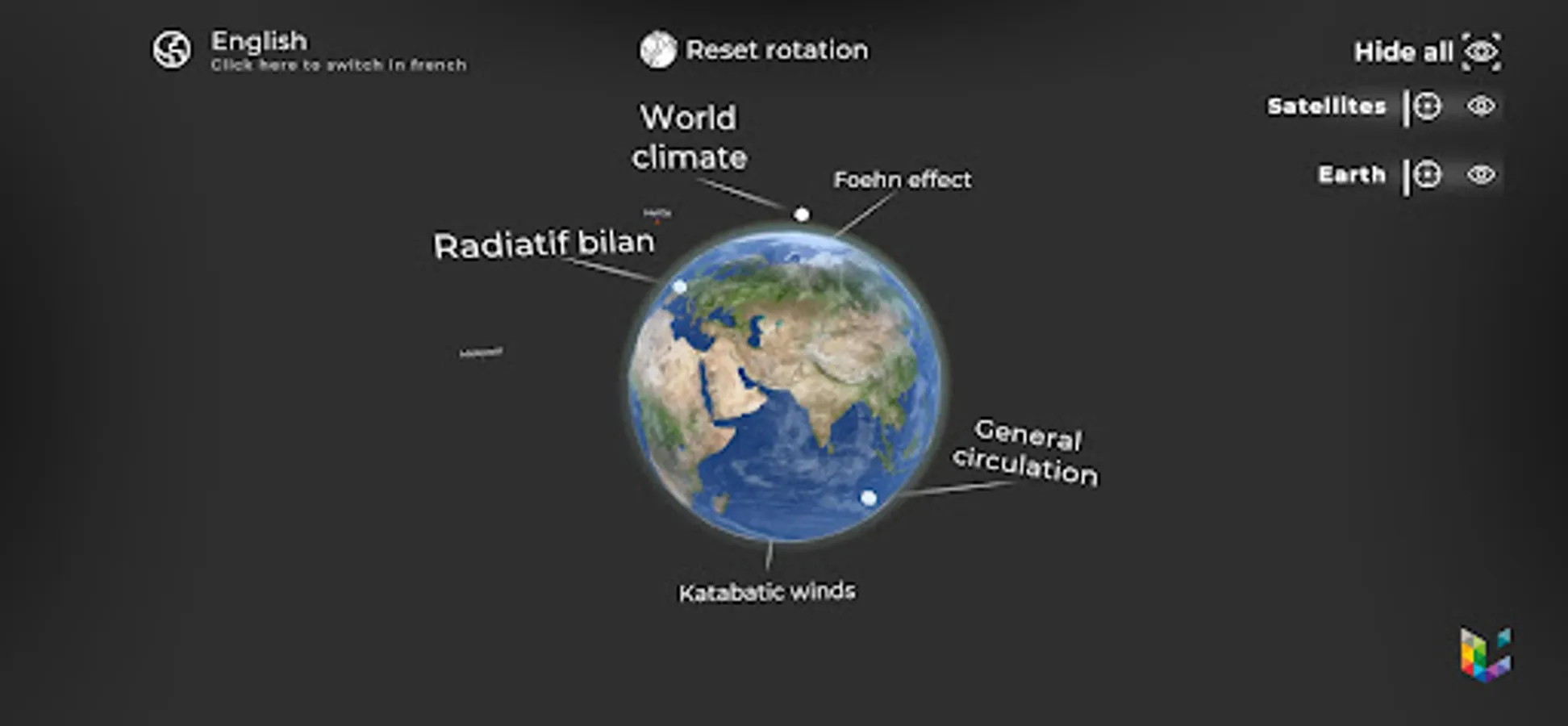 This application, initially created to be used as a techno-pedagogical educational tool in the framework of the MOOC (Massive Open Online Course) "Tout comprendre sur le climat et son réchauffement" and courses given in the first year of bachelor in geography at the University of Liège, is freely accessible to anyone who wants to know more about how the climate works.